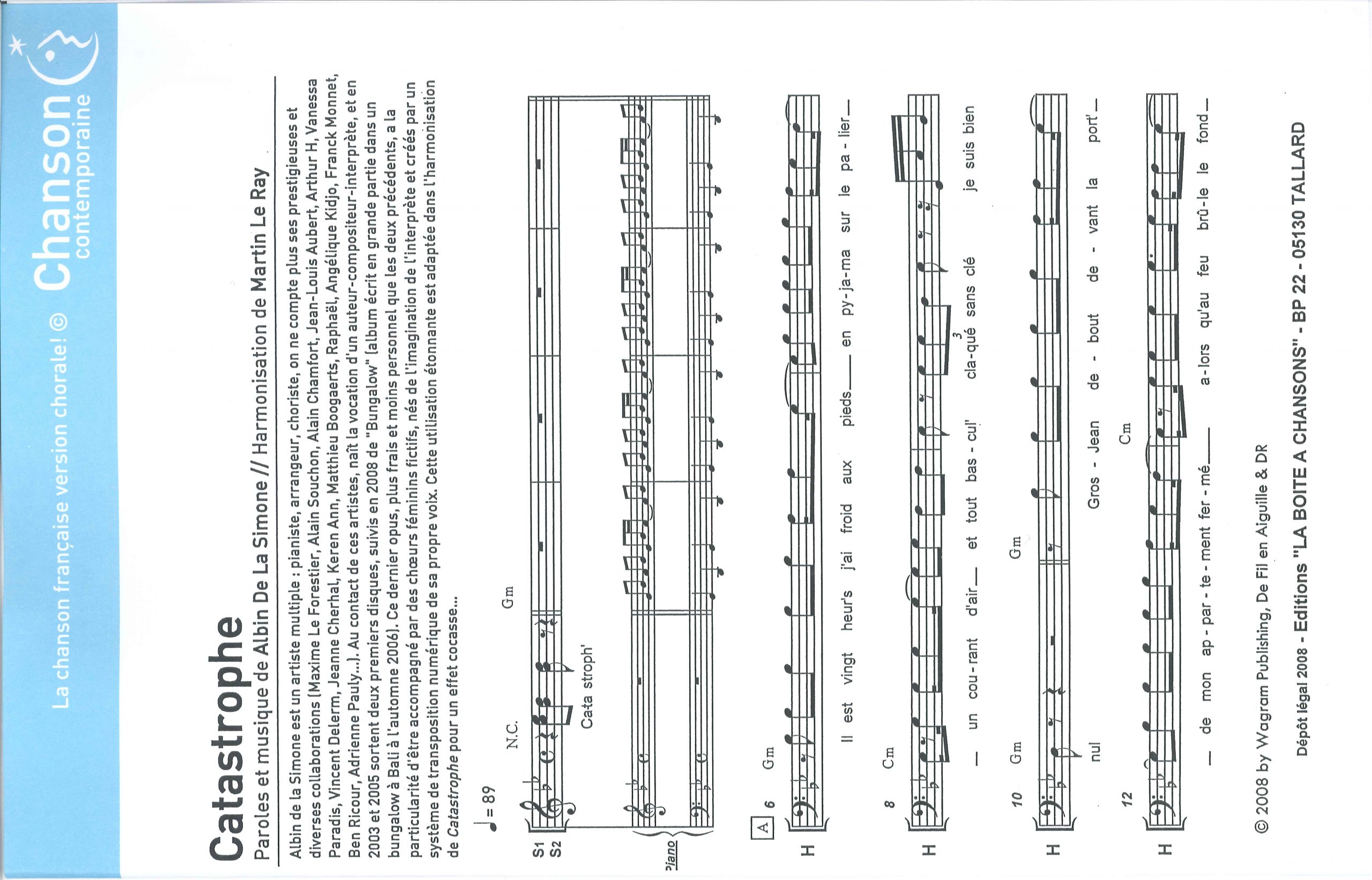 Paroles et musique de Albin DE LA SIMONE Harmonisation : Martin LE RAY