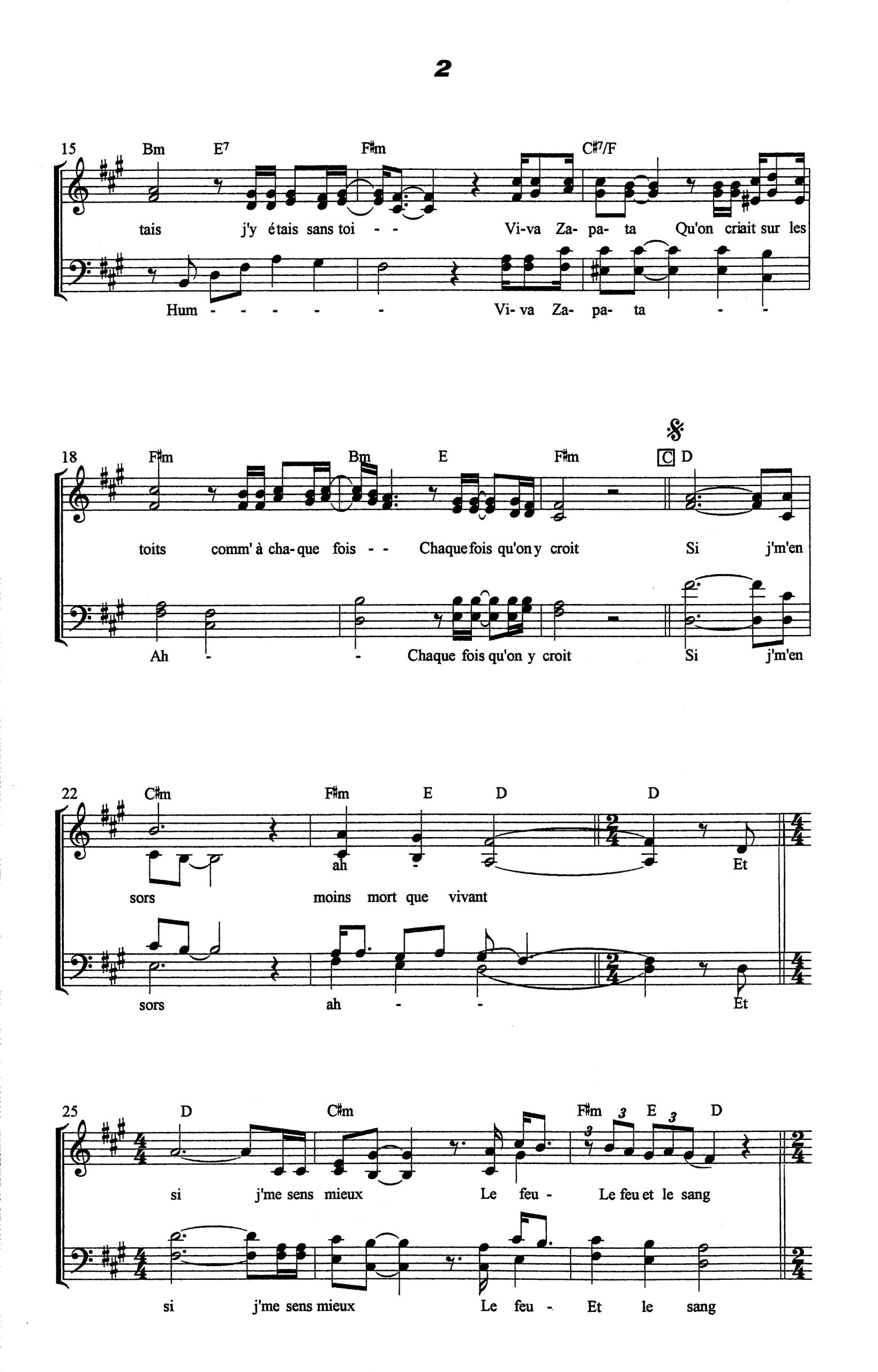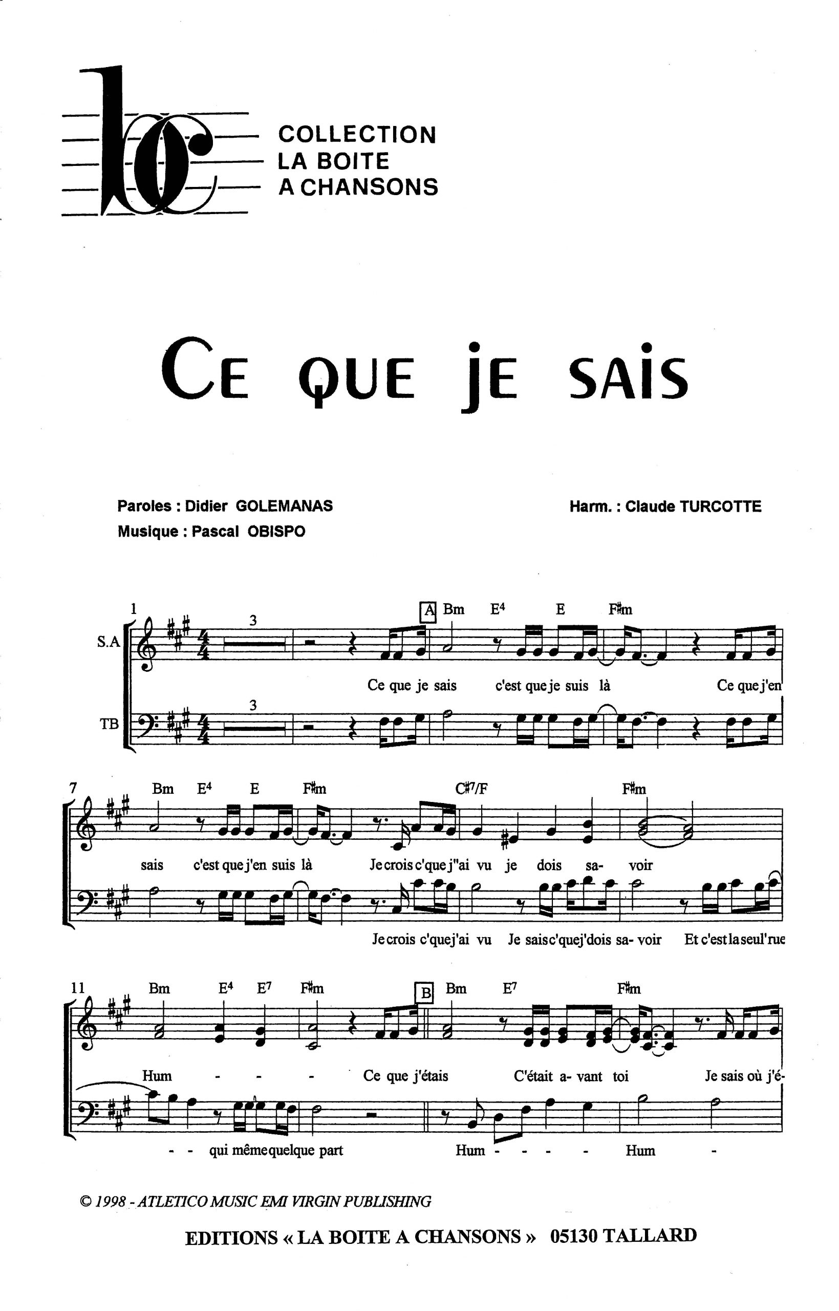 Paroles et musique de GOLEMANAS/OBISPO Harmonisation : Claude TURCOTTE
