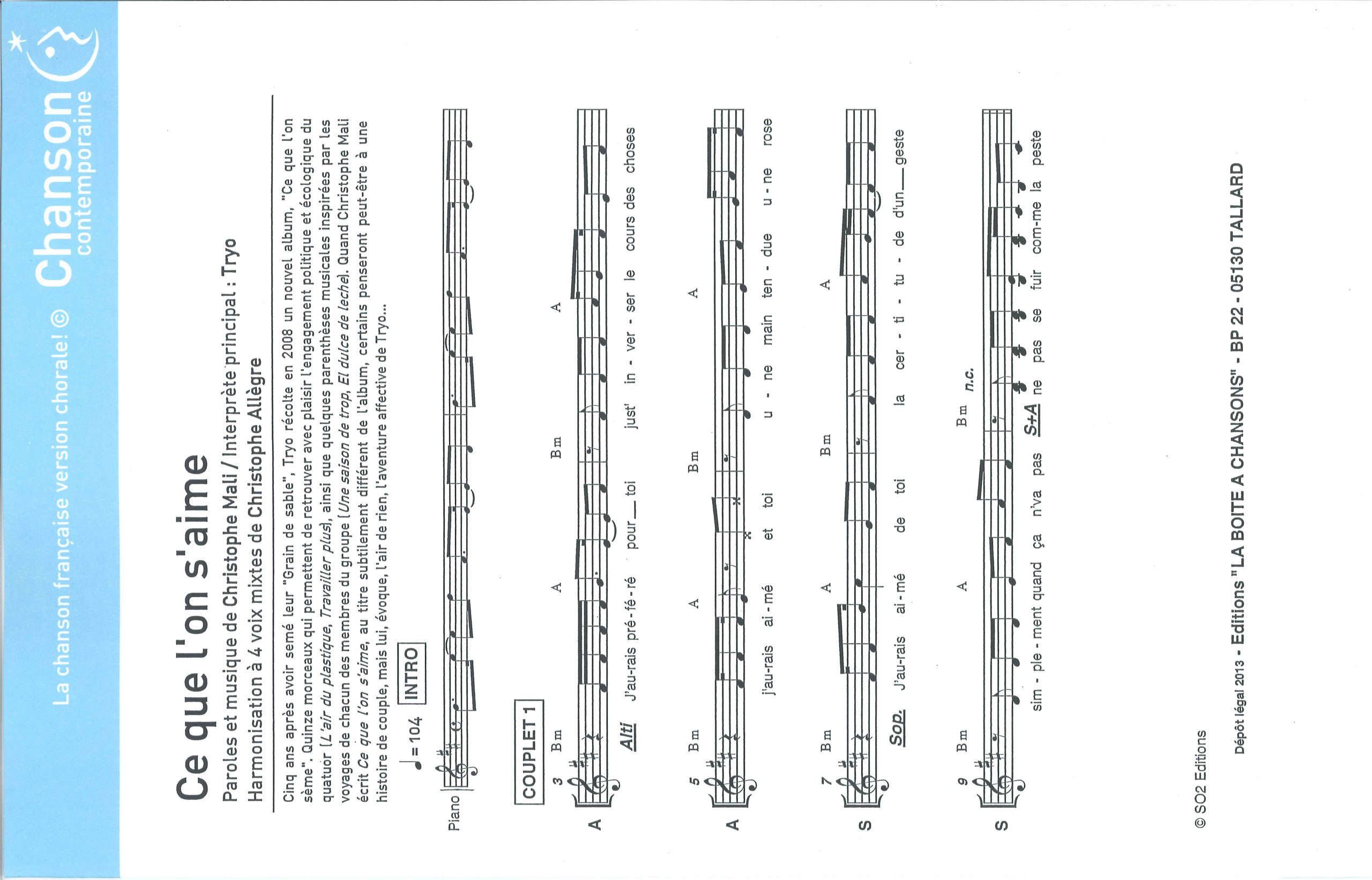 Paroles et musique de MALI Harmonisation : Christophe ALLEGRE_