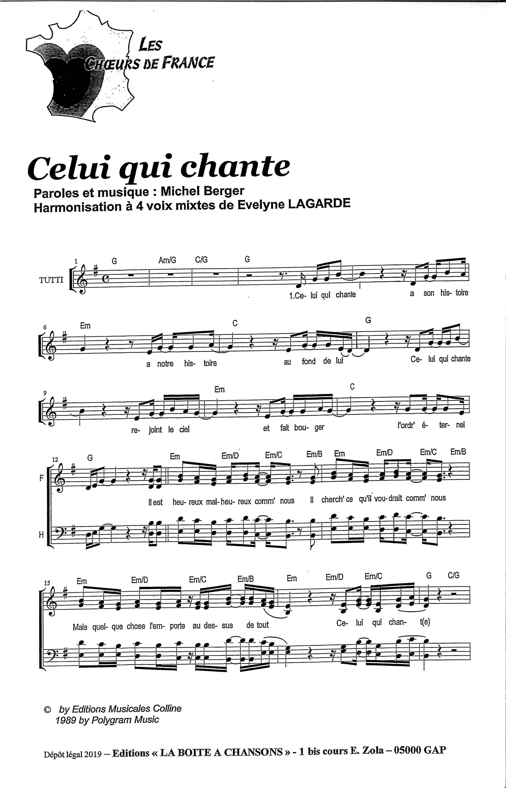 Paroles et musique : M. Berger Harmonisation : Evelyne Lagarde