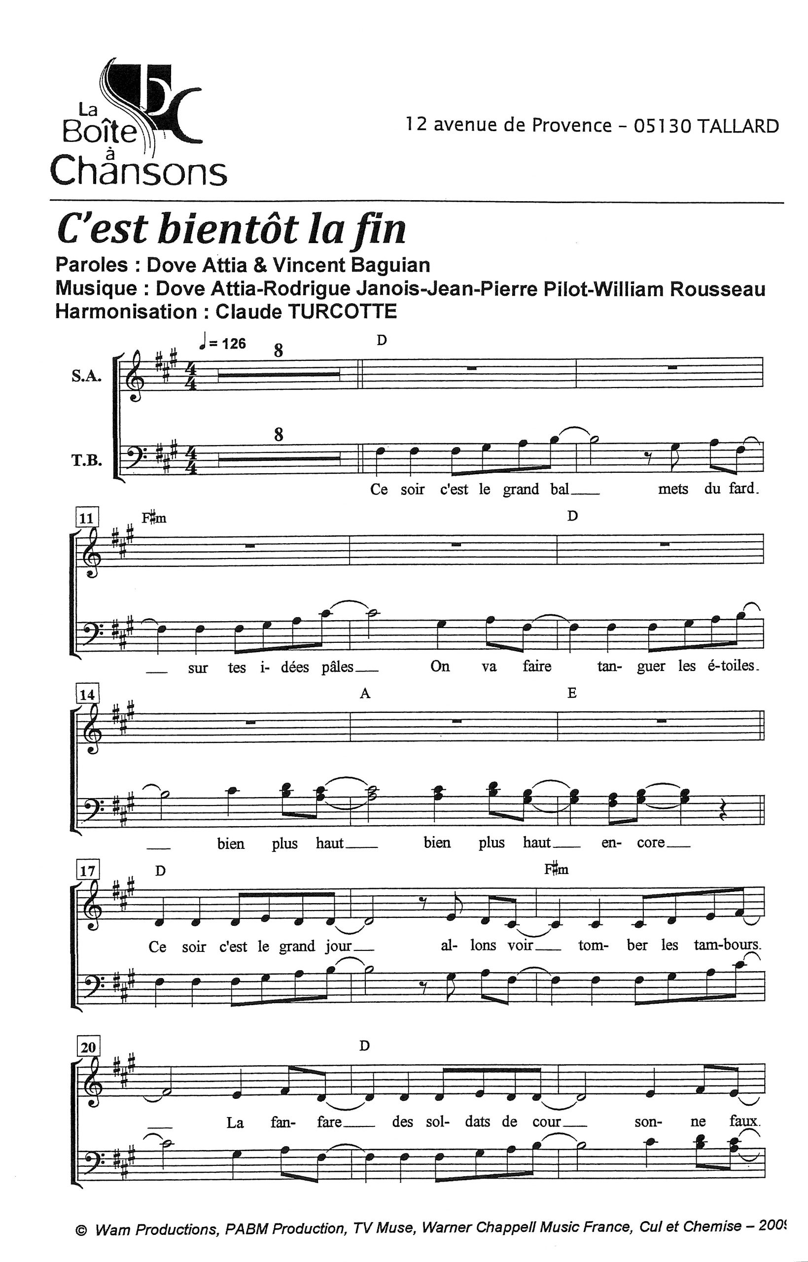 Paroles et musique de ATTIA Harmonisation : Claude TURCOTTE