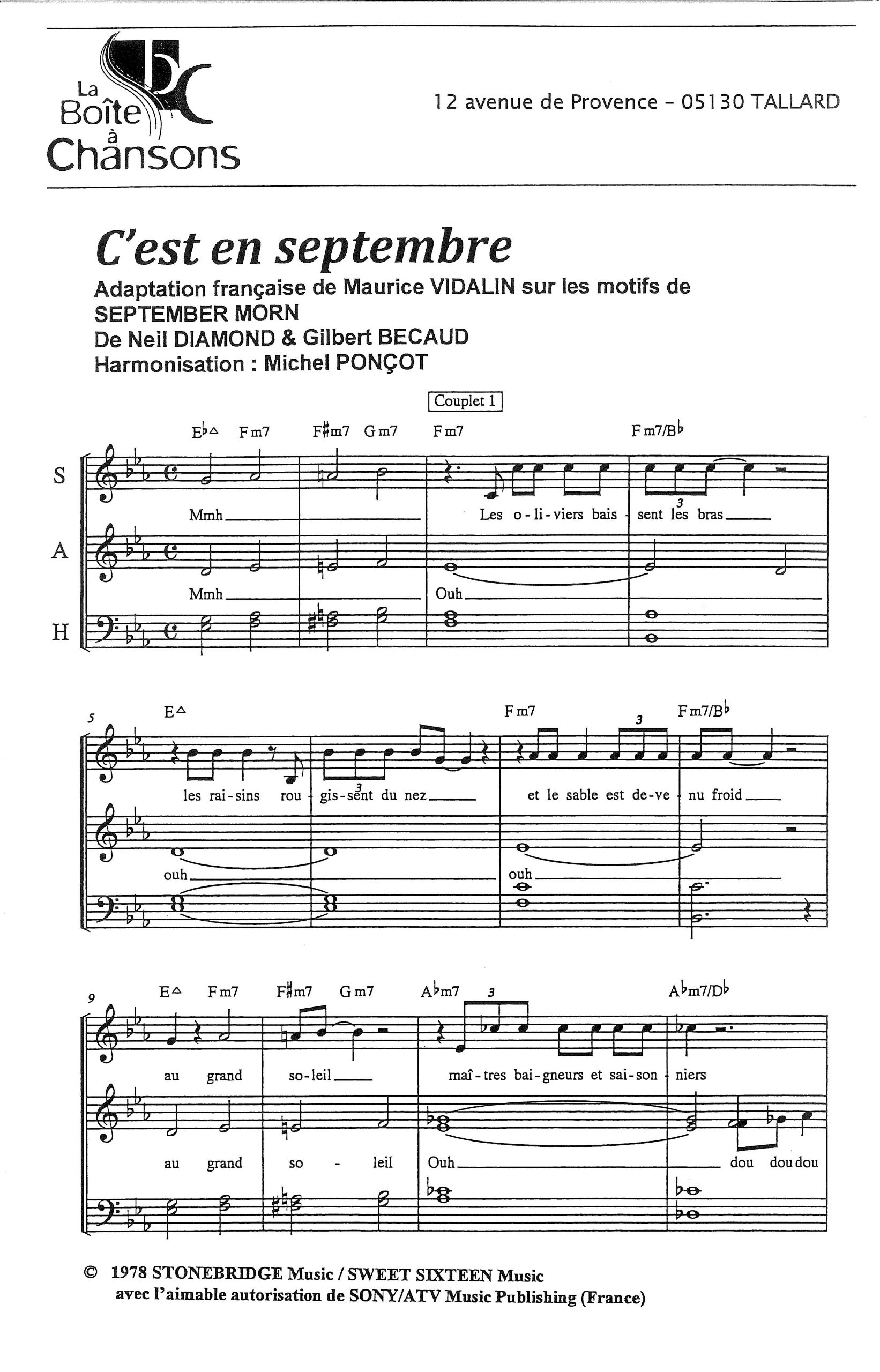 Paroles et musique : Diamond / G. Bécaud Harmonisation : Michel PONCOT