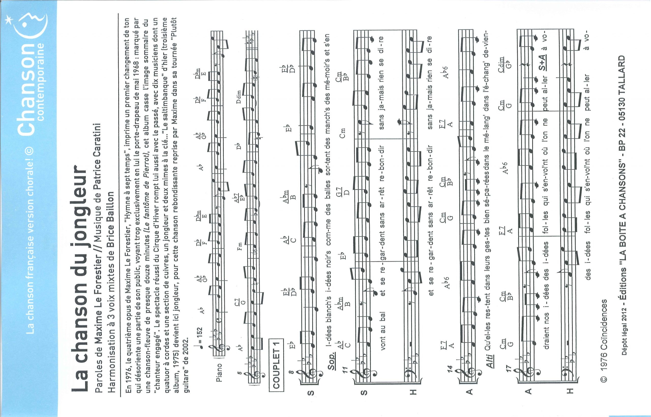 Paroles et musique de LE FORESTIER Harmonisation : Brice BAILLON