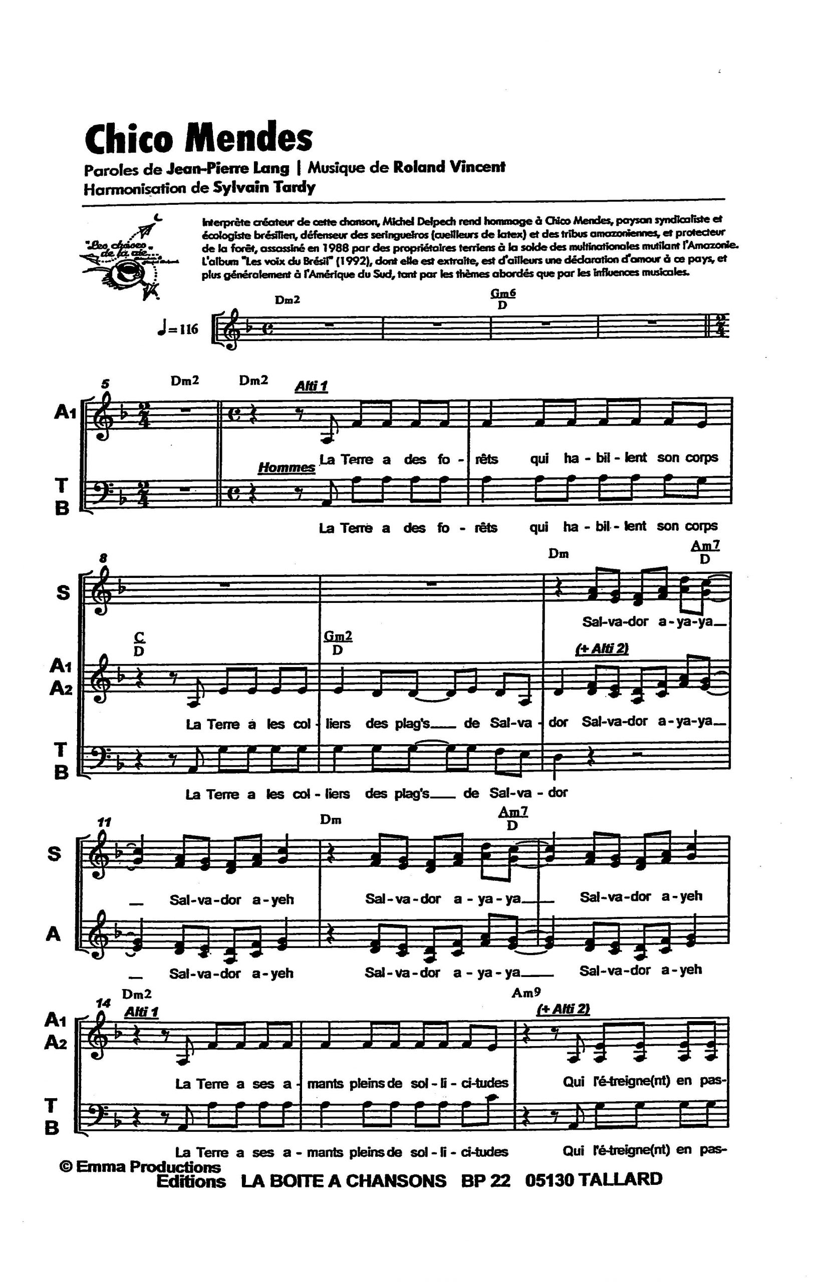 Paroles et musique de DELPECH Harmonisation : Sylvain TARDY