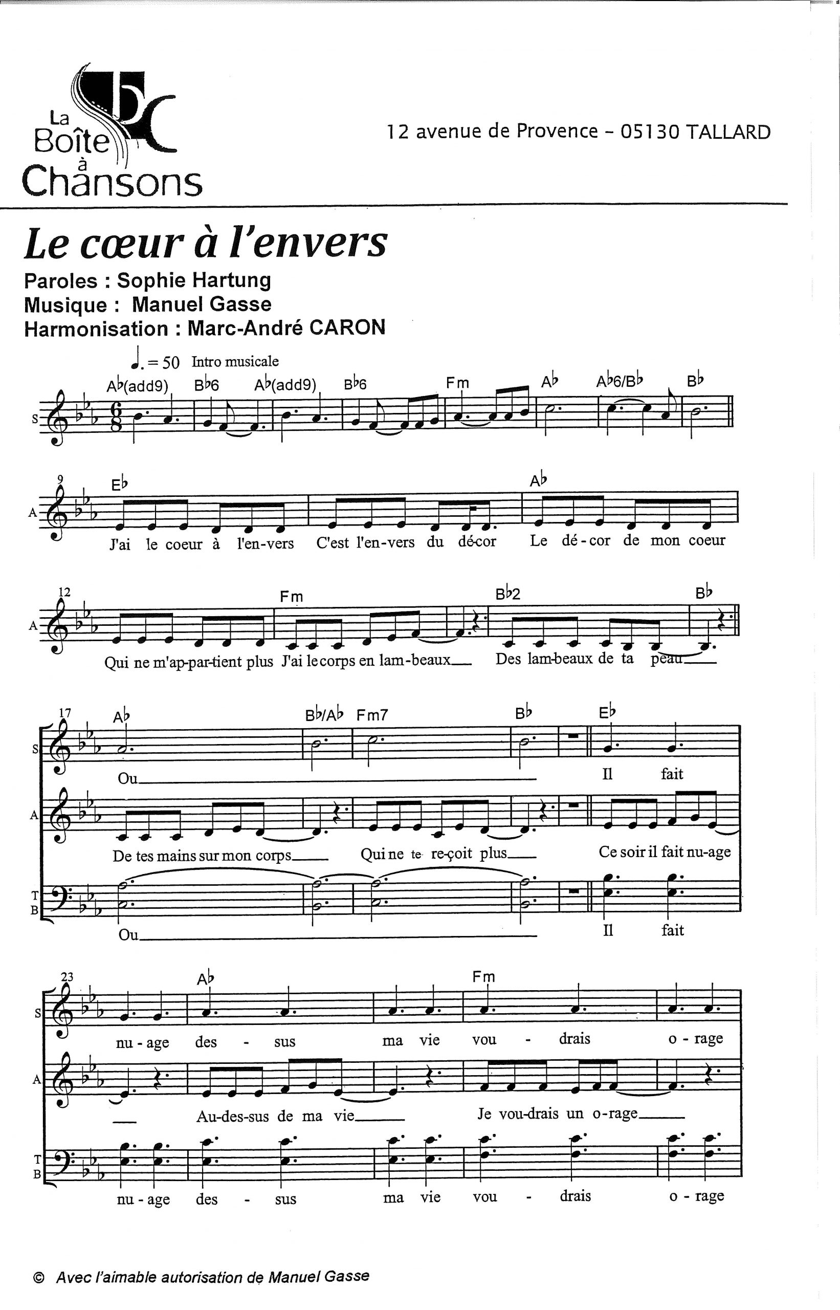 Paroles et musique de GASSE Harmonisation : Marc André CARON