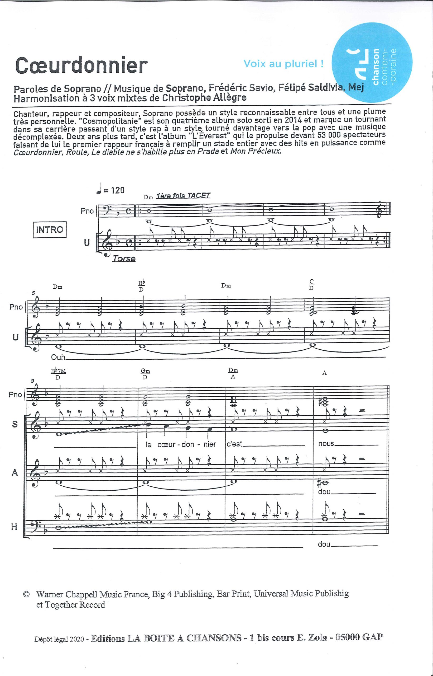 paroles et musique : Soprano / F. Savio / F. Saldivia / Mej Arrangement choral : Christophe Allegre