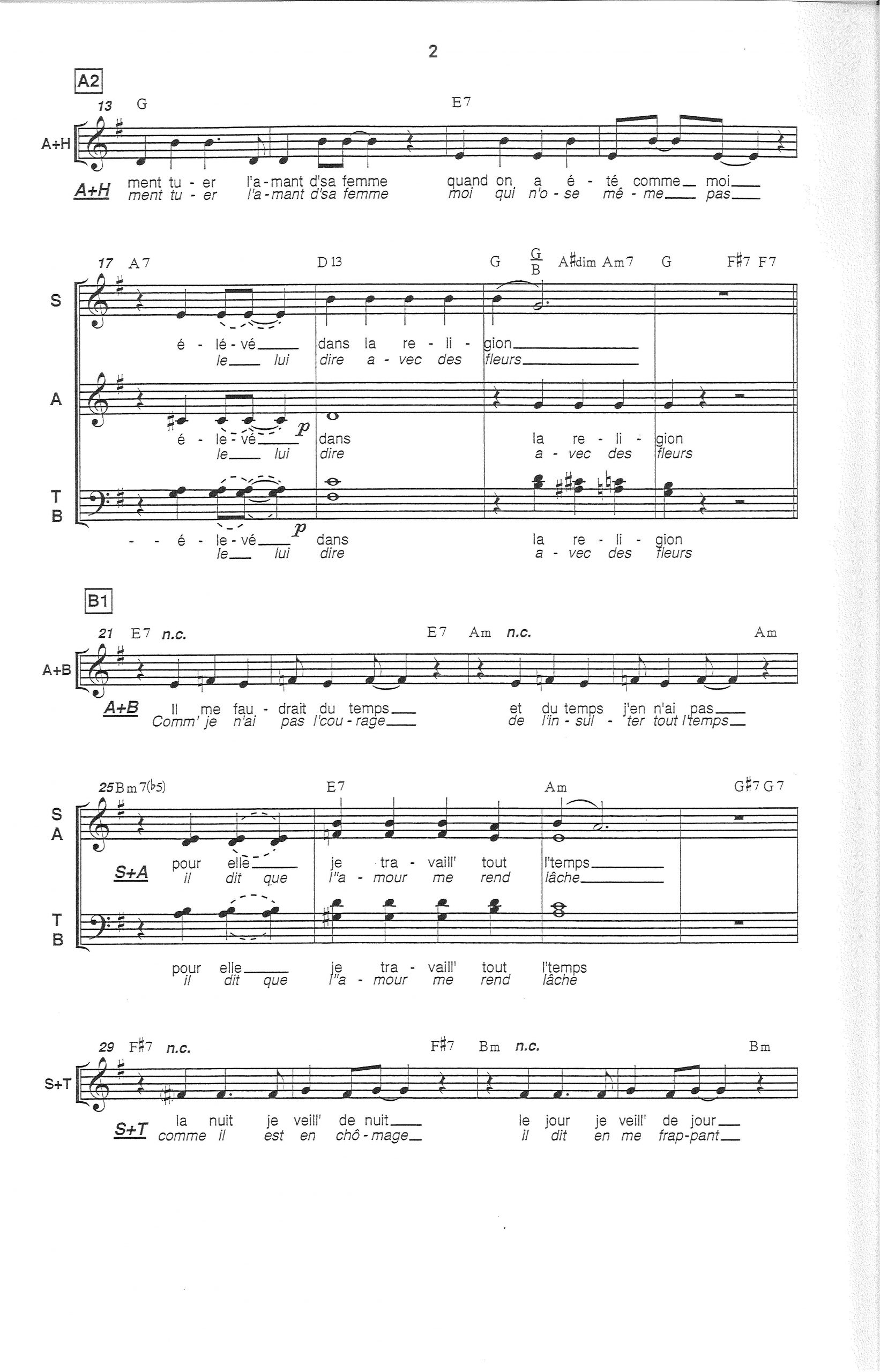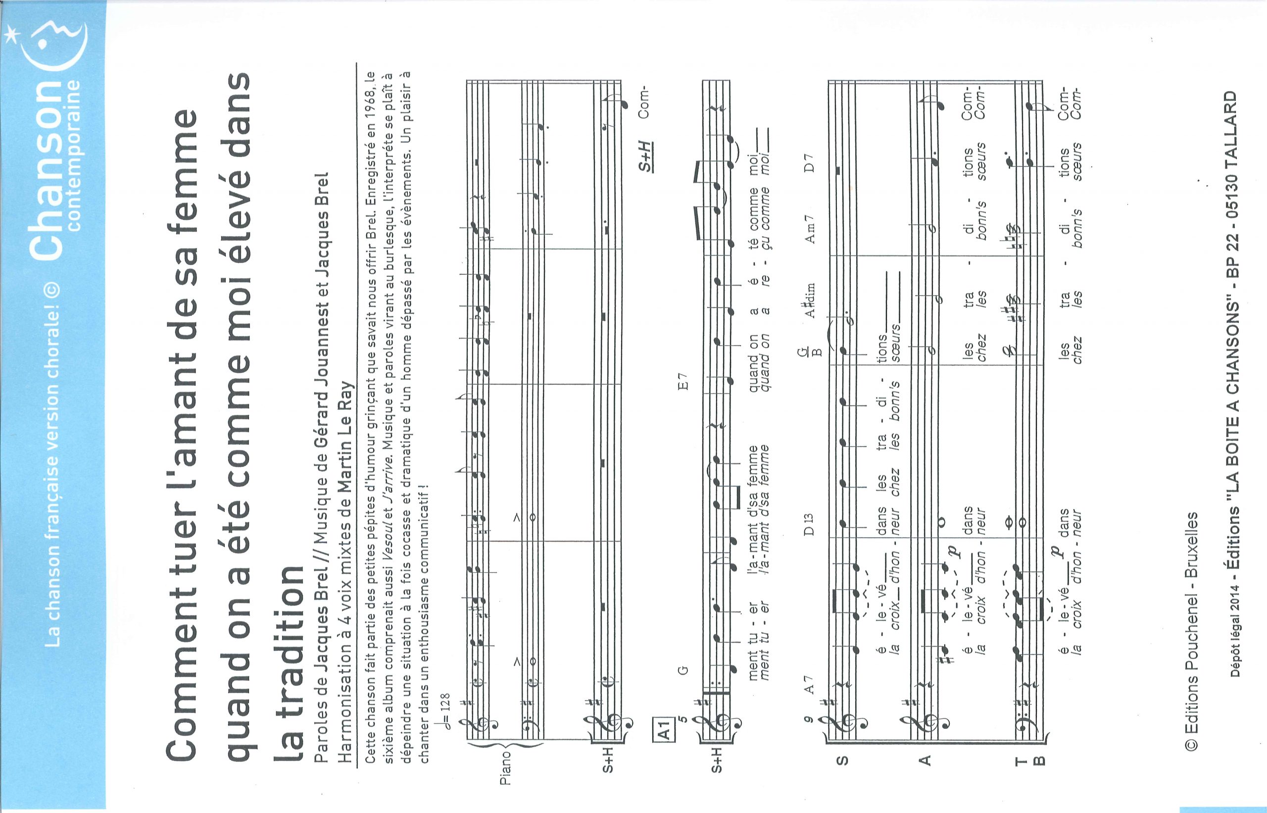 Paroles et musique de BREL Harmonisation : Martin LE RAY