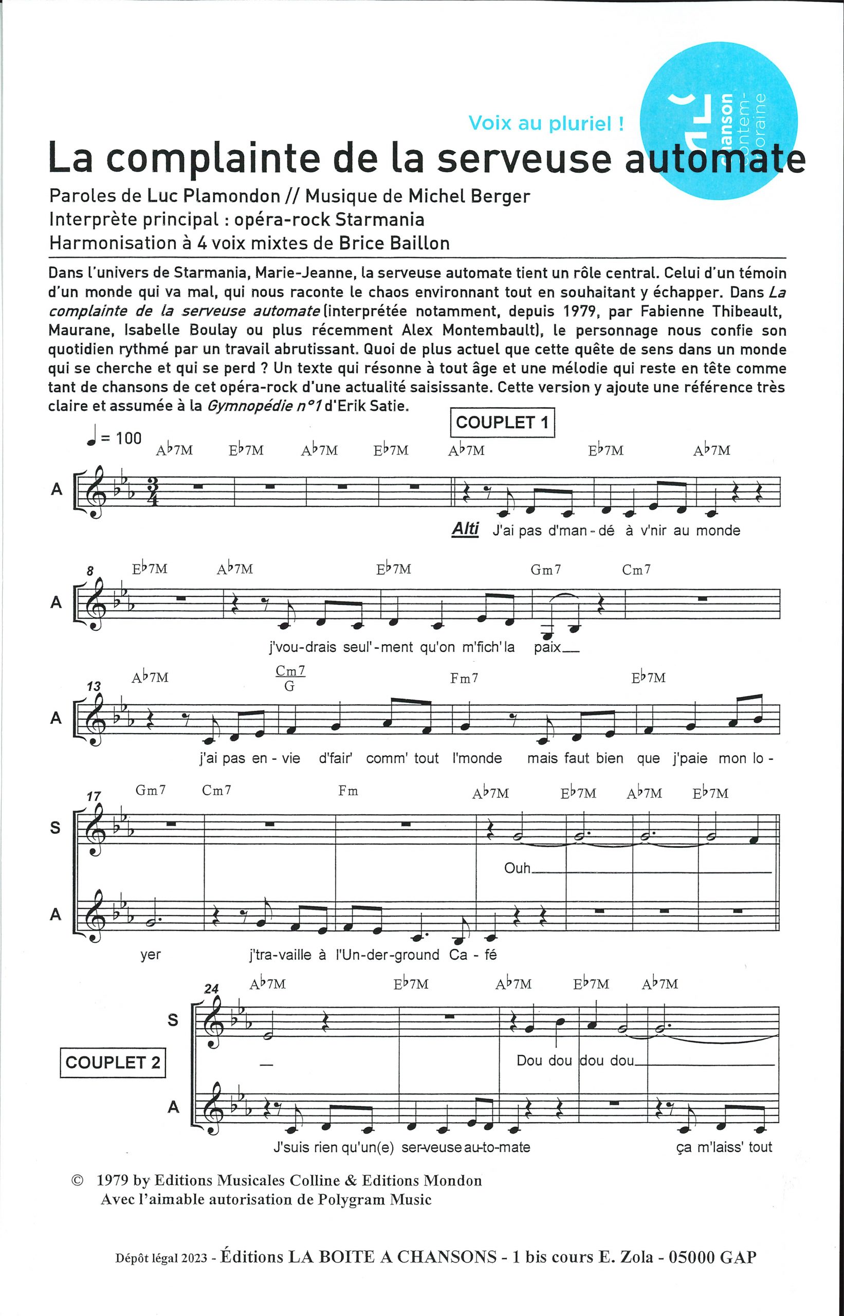Paroles et musique : Plamondon/Berger Harmonisation : Brice Baillon