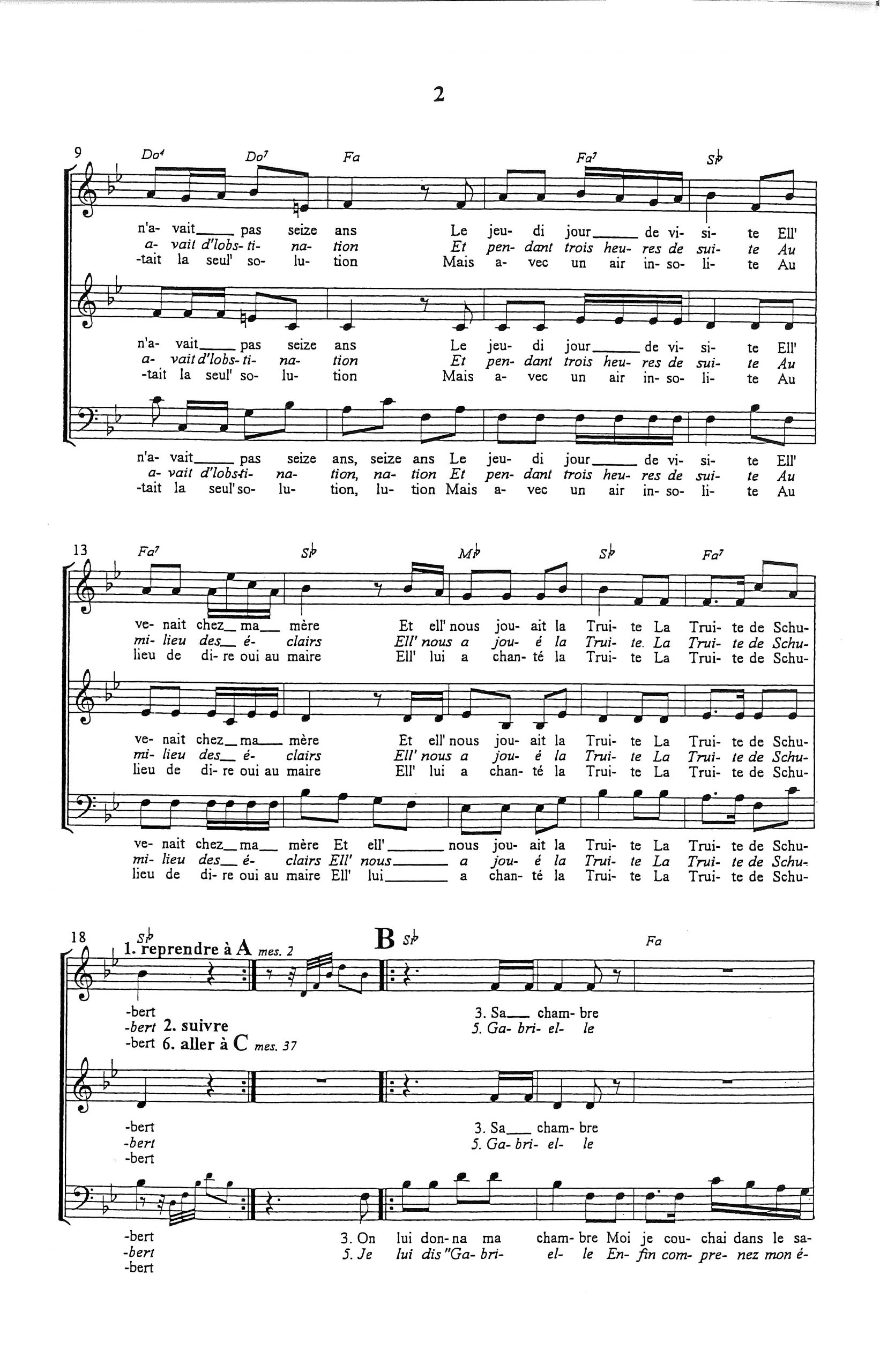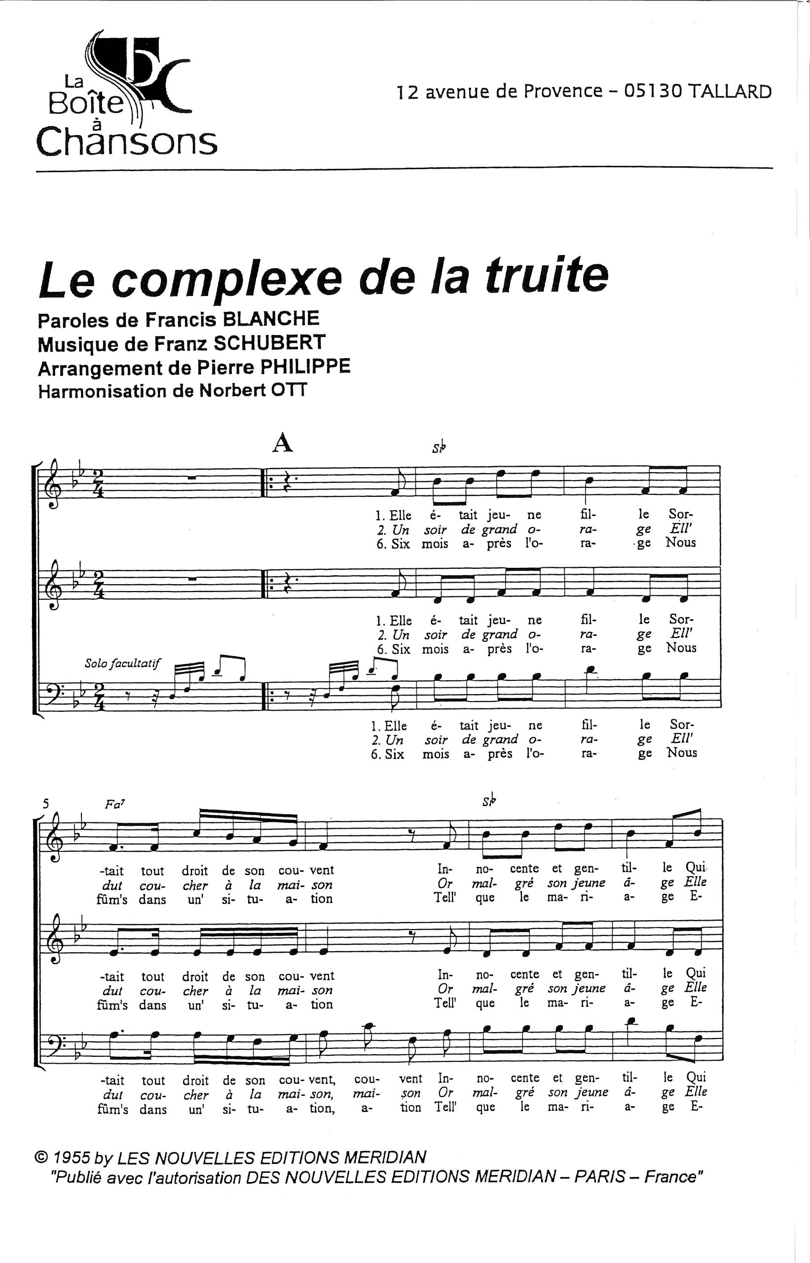 Paroles et musique de BLANCHE/SCHUBERT Harmonisation : Norbert OTT