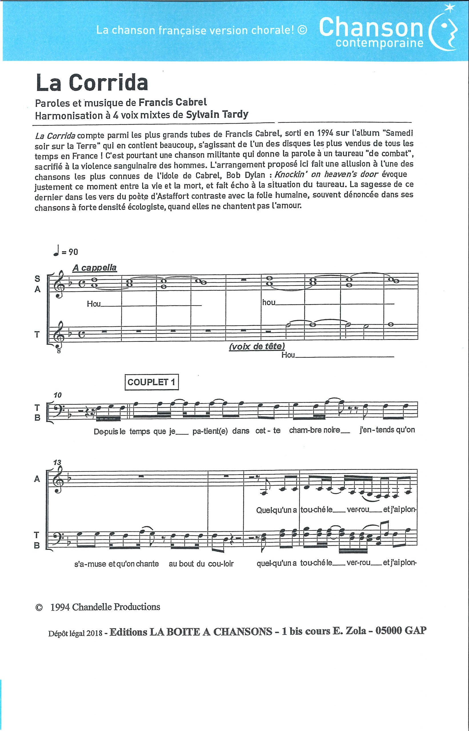 Paroles et musique : F. Cabrel Harmonisation : Sylvain Tardy