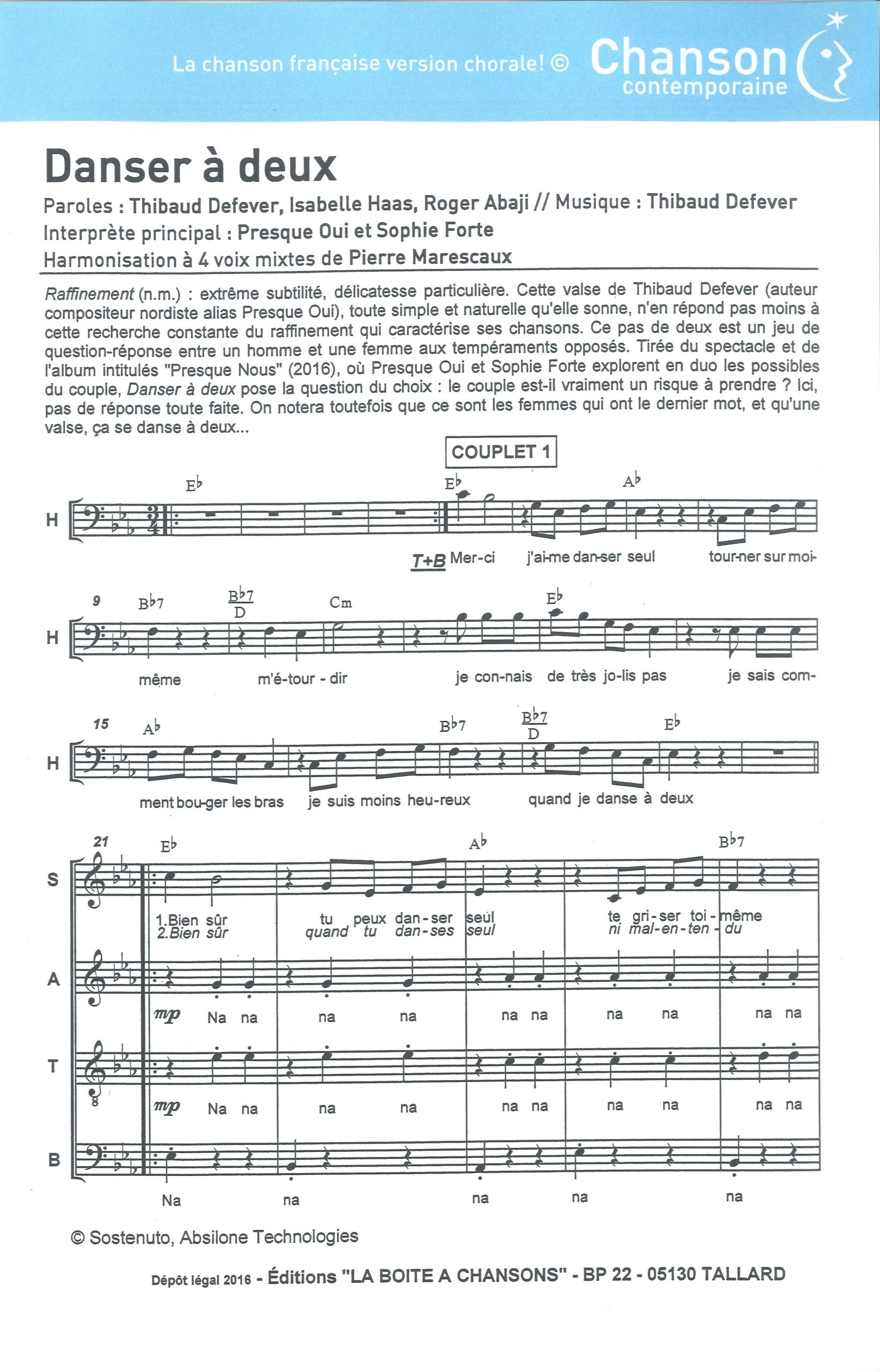 Paroles et musique : T. Defever / I. Haas / R. Abaji Harmonisation : Pierre MARESCAUX