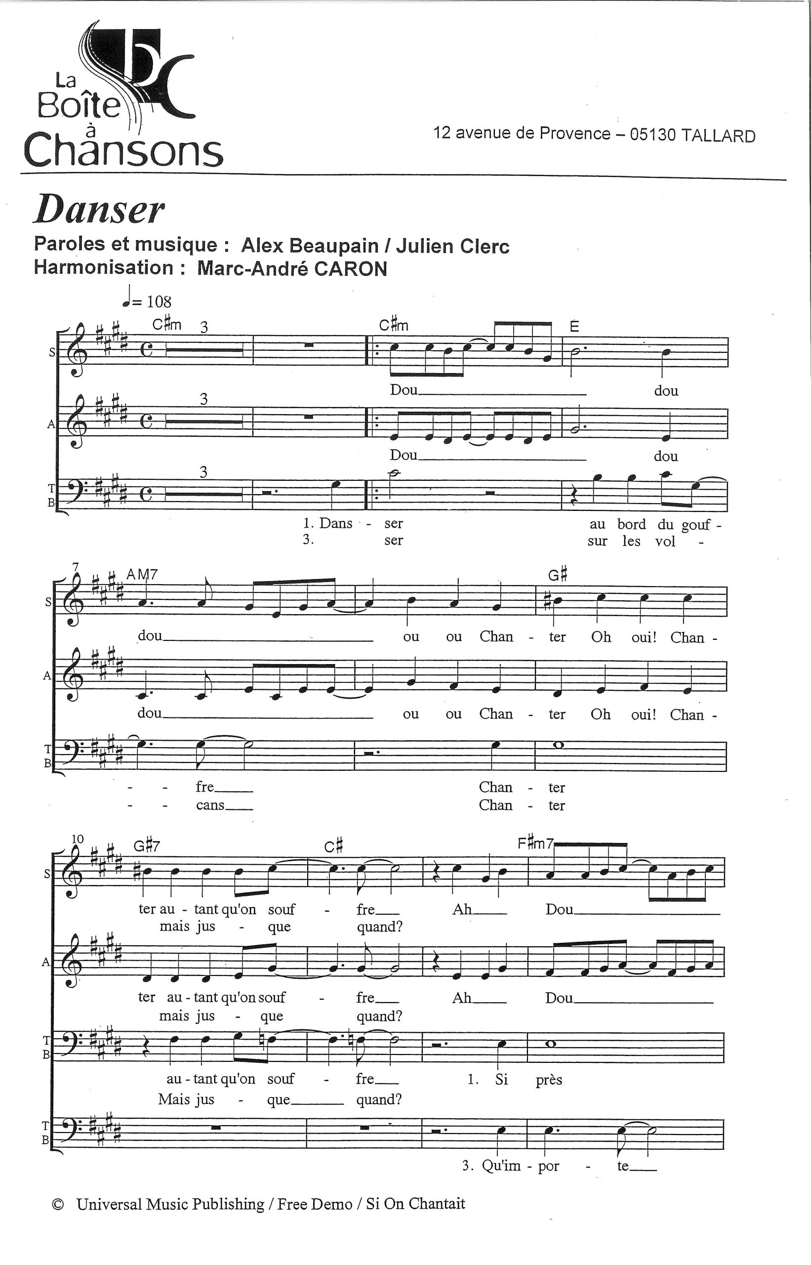 Paroles : A. Beaupain Musique : J. Clerc Harmonisation : Marc André CARON