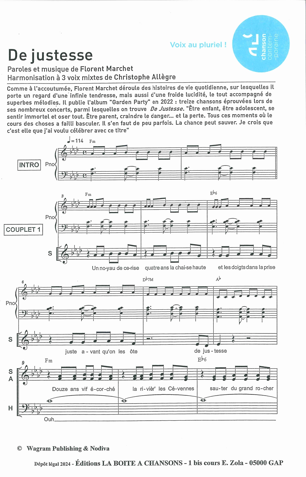 Harmonisation à 3 voix mixtes : Christophe Allègre