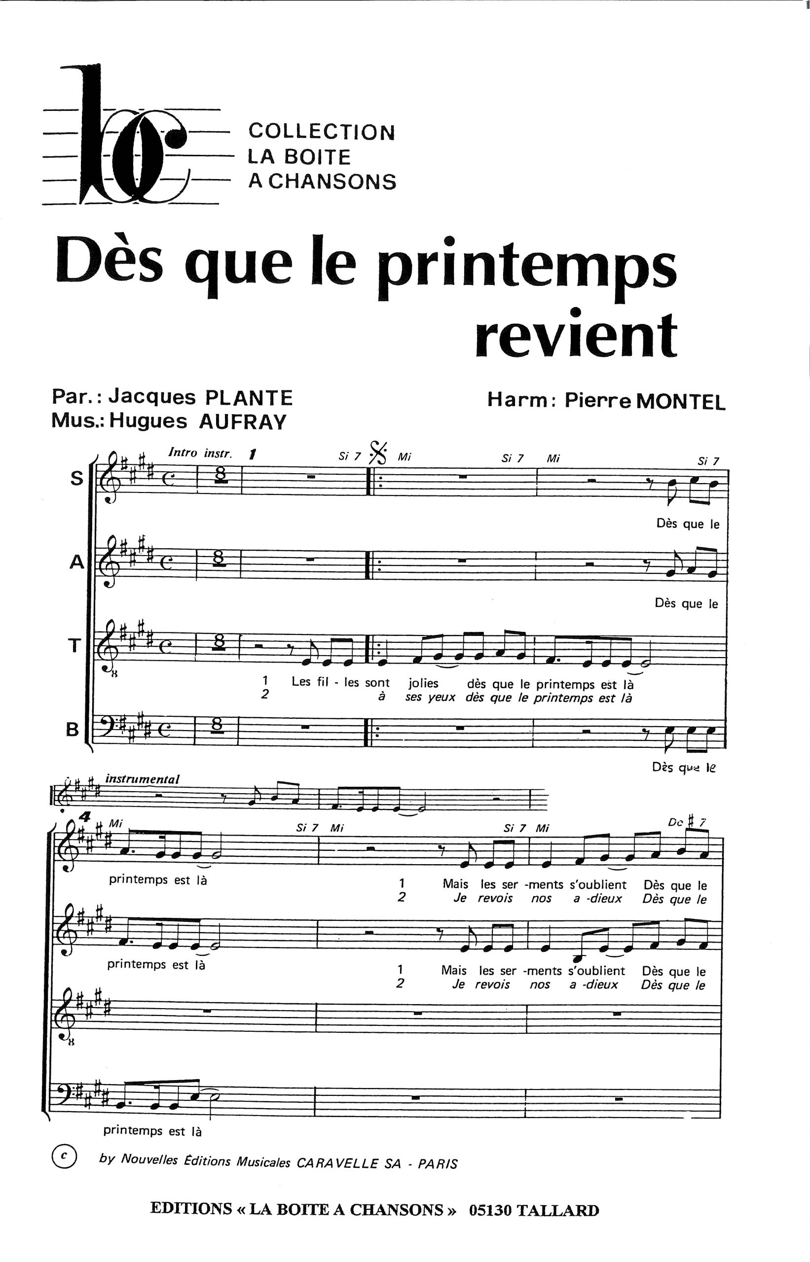 Paroles et musique de PLANTE/AUFRAY Harmonisation :Dominique MONTEL