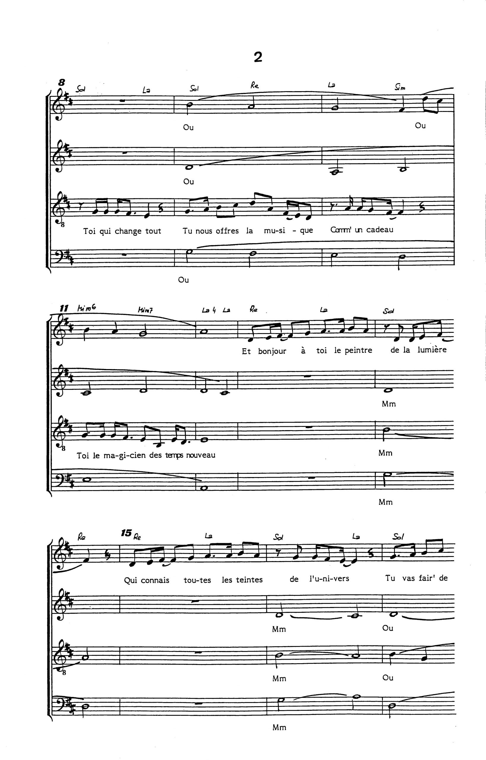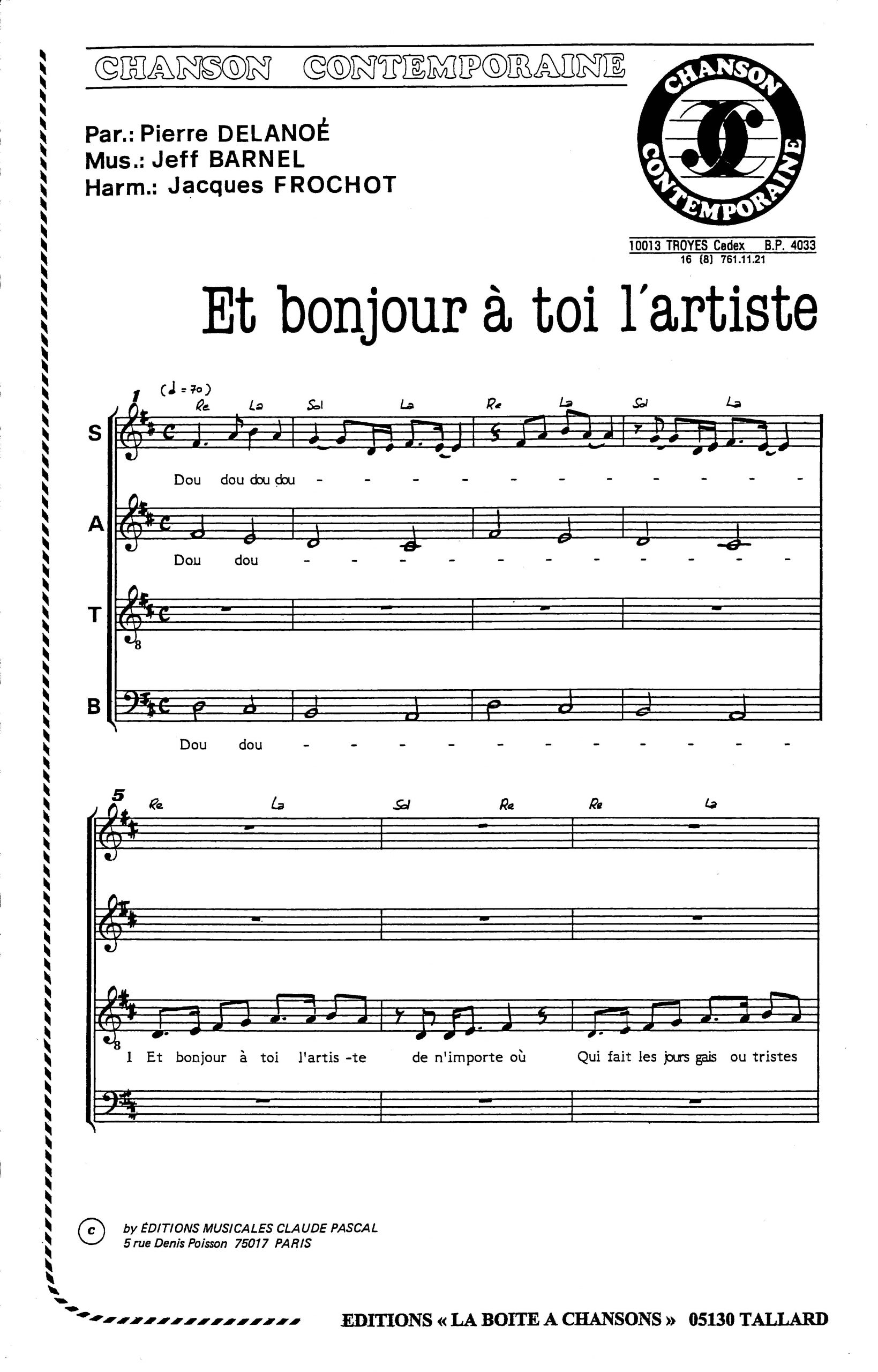 Paroles et musique de DELANOE/BARNEL Harmonisation : Jacques FROCHOT