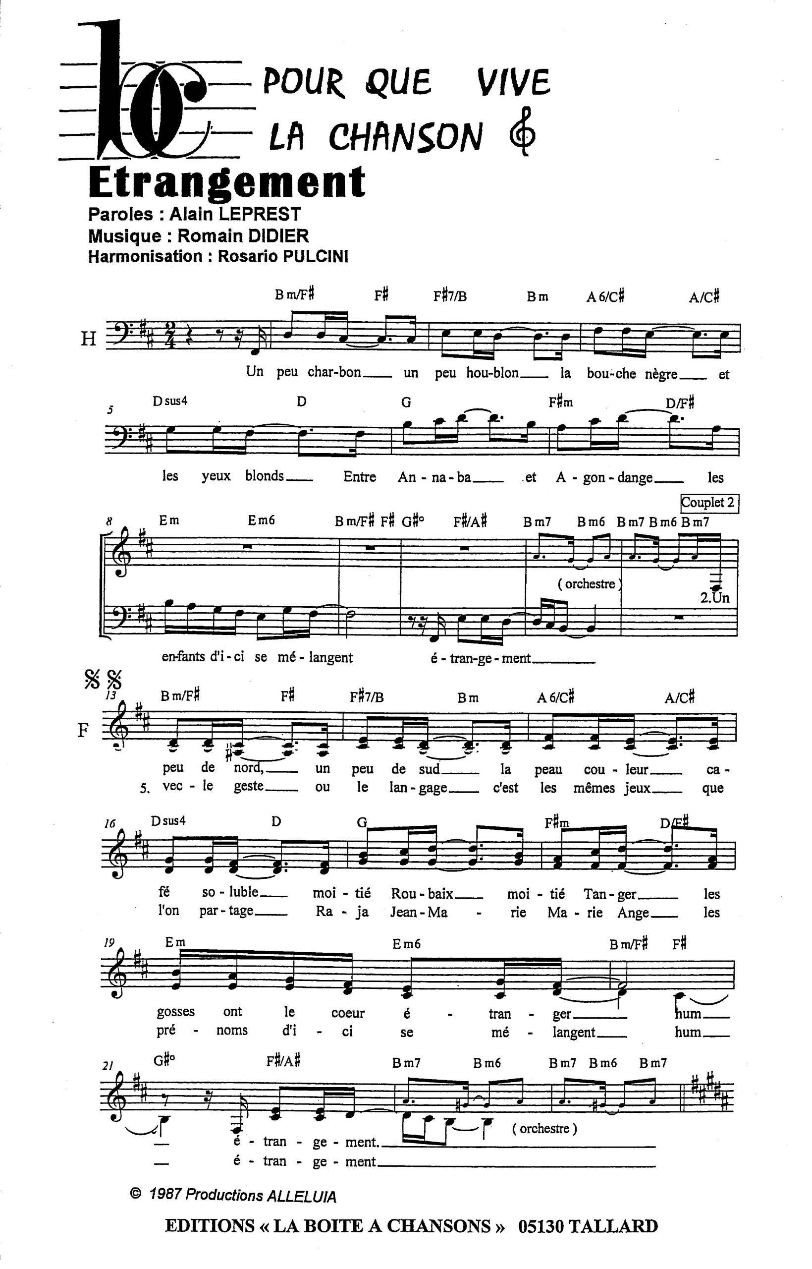 Paroles et musique de LEPREST / DIDIER Harmonisation : Rosario PULCINI