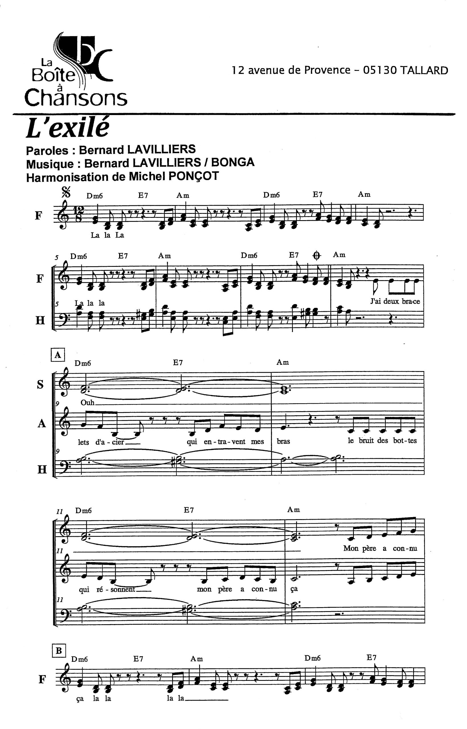 Paroles et musique de LAVILLIERS Harmonisation : Michel PONCOT