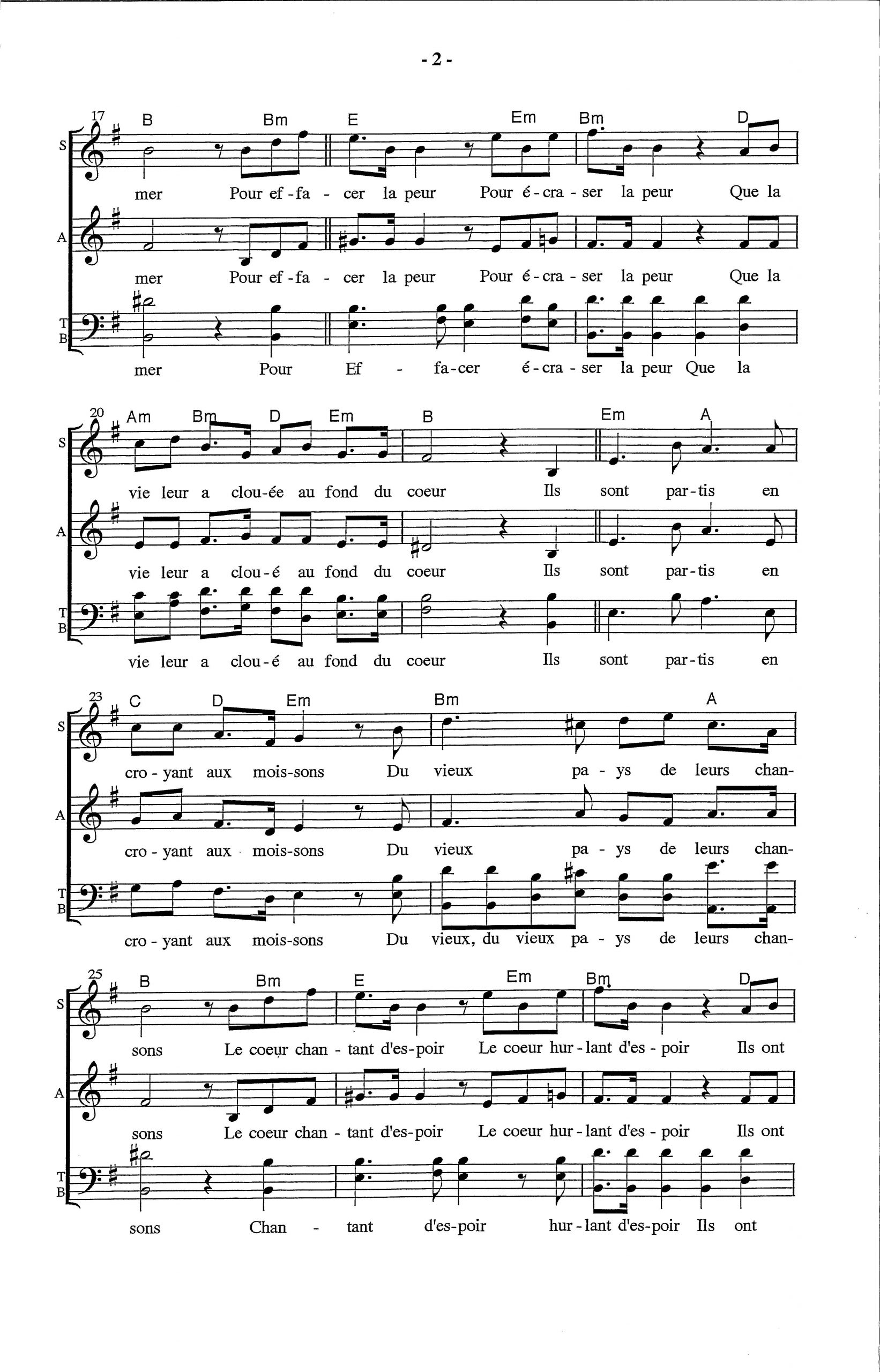 Paroles et musique : E. Gold Harmonisation : Marc André CARON