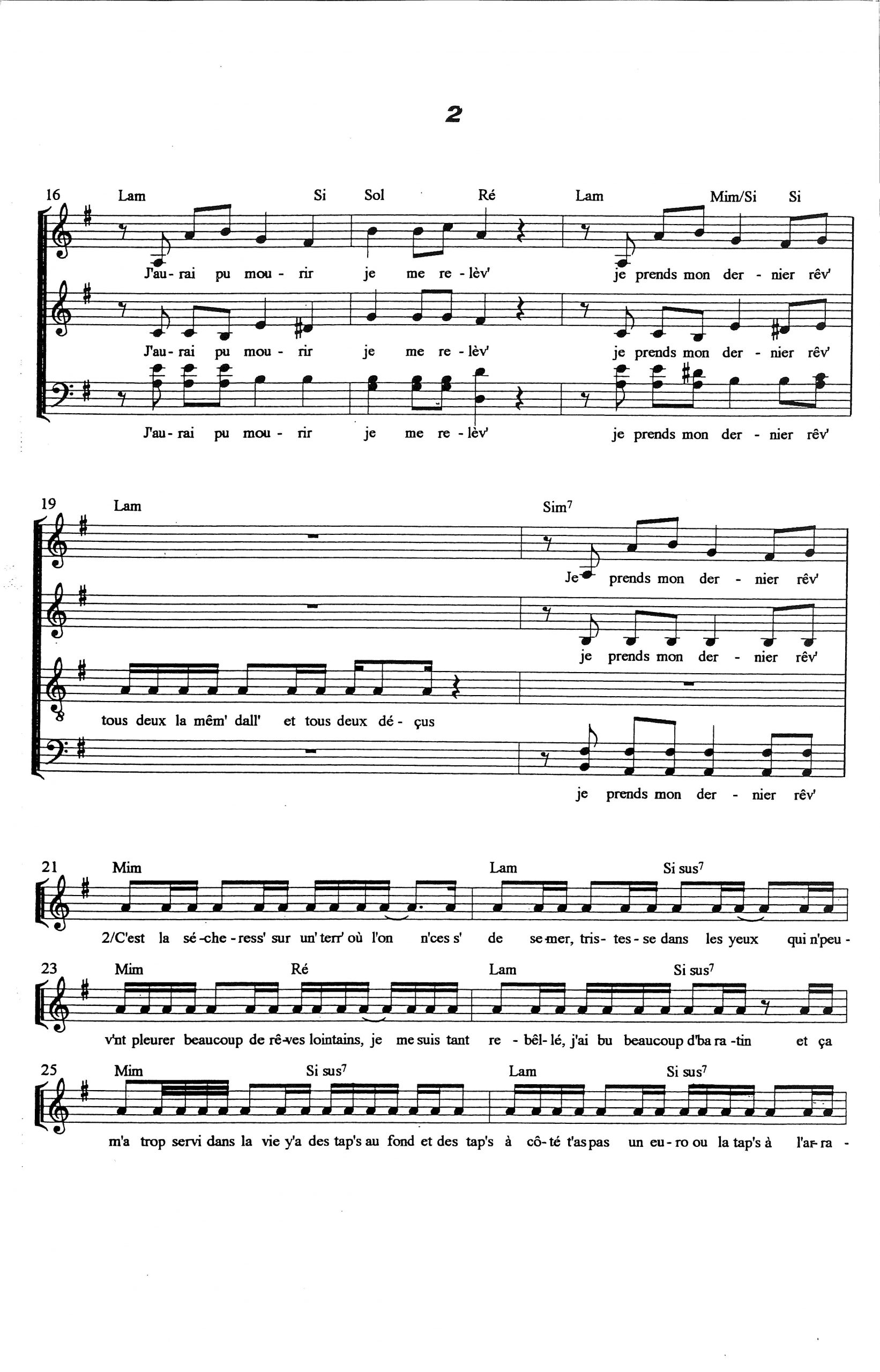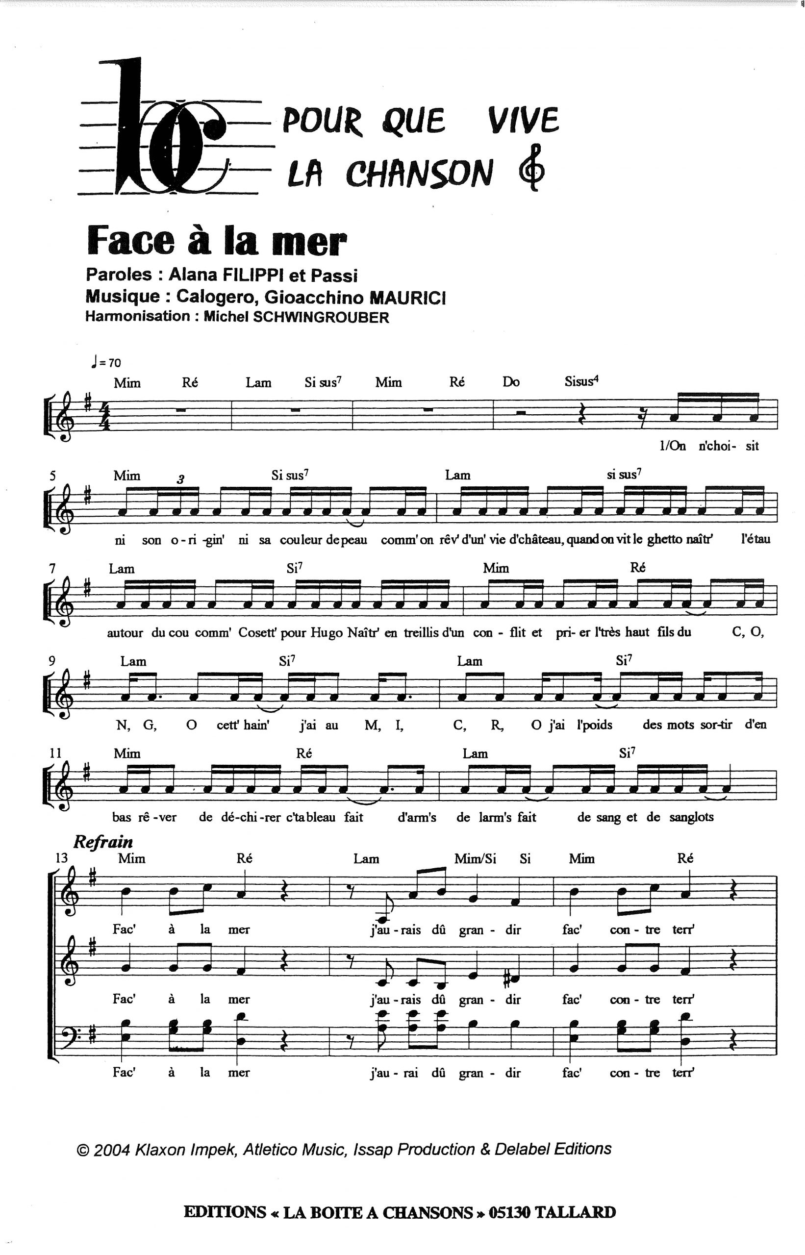 Paroles et musique de CALOGERO Harmonisation : Michel SCHWINGROUBER