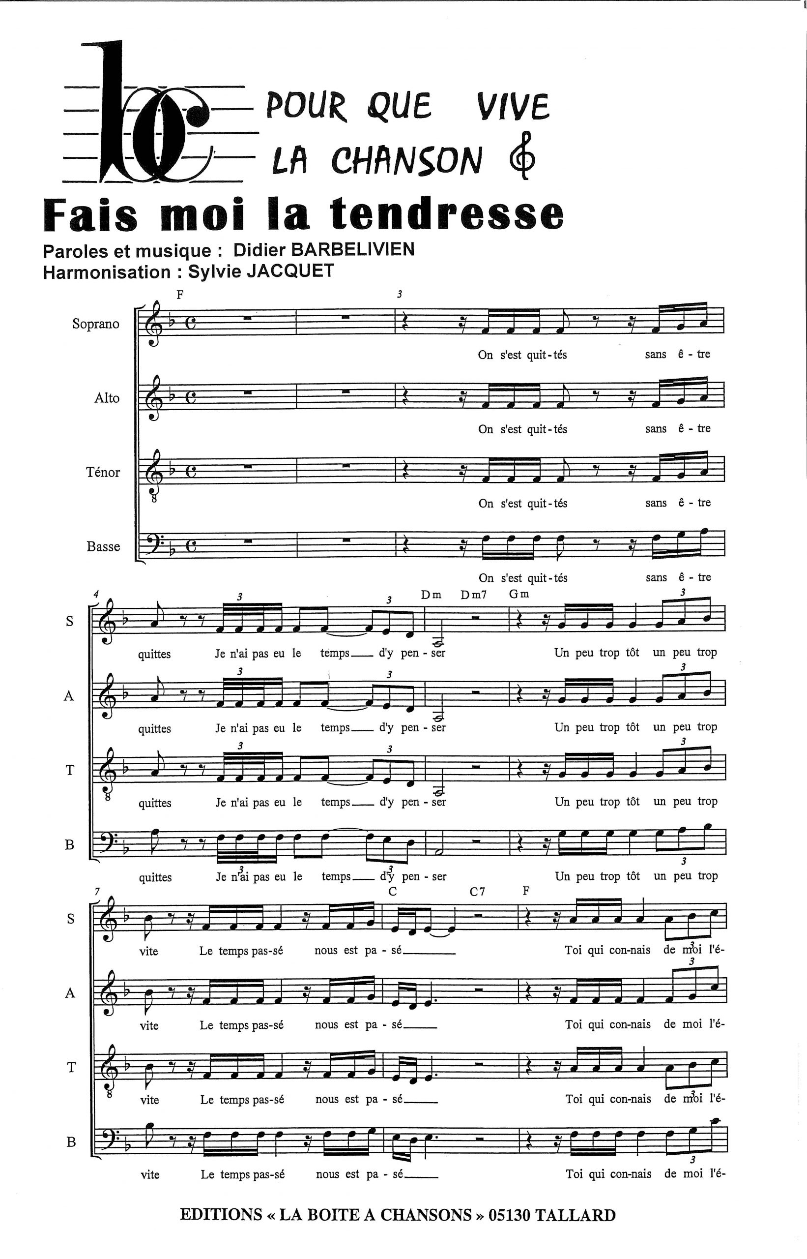 Paroles et musique de BARBELIVIEN Harmonisation : Sylvie JACQUET