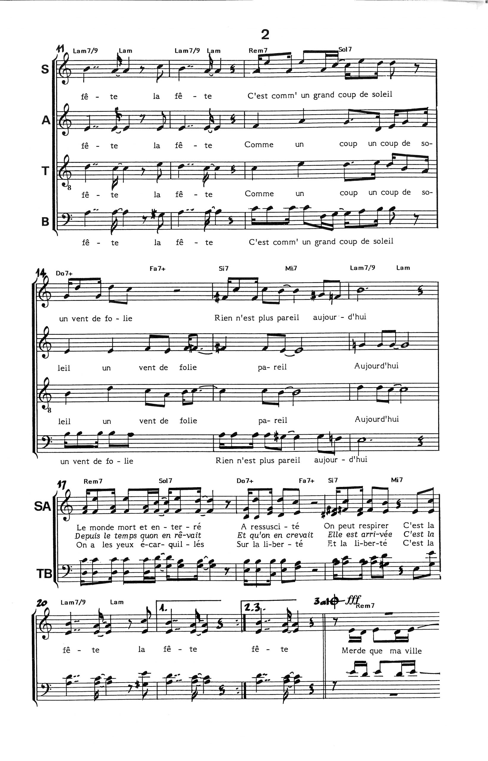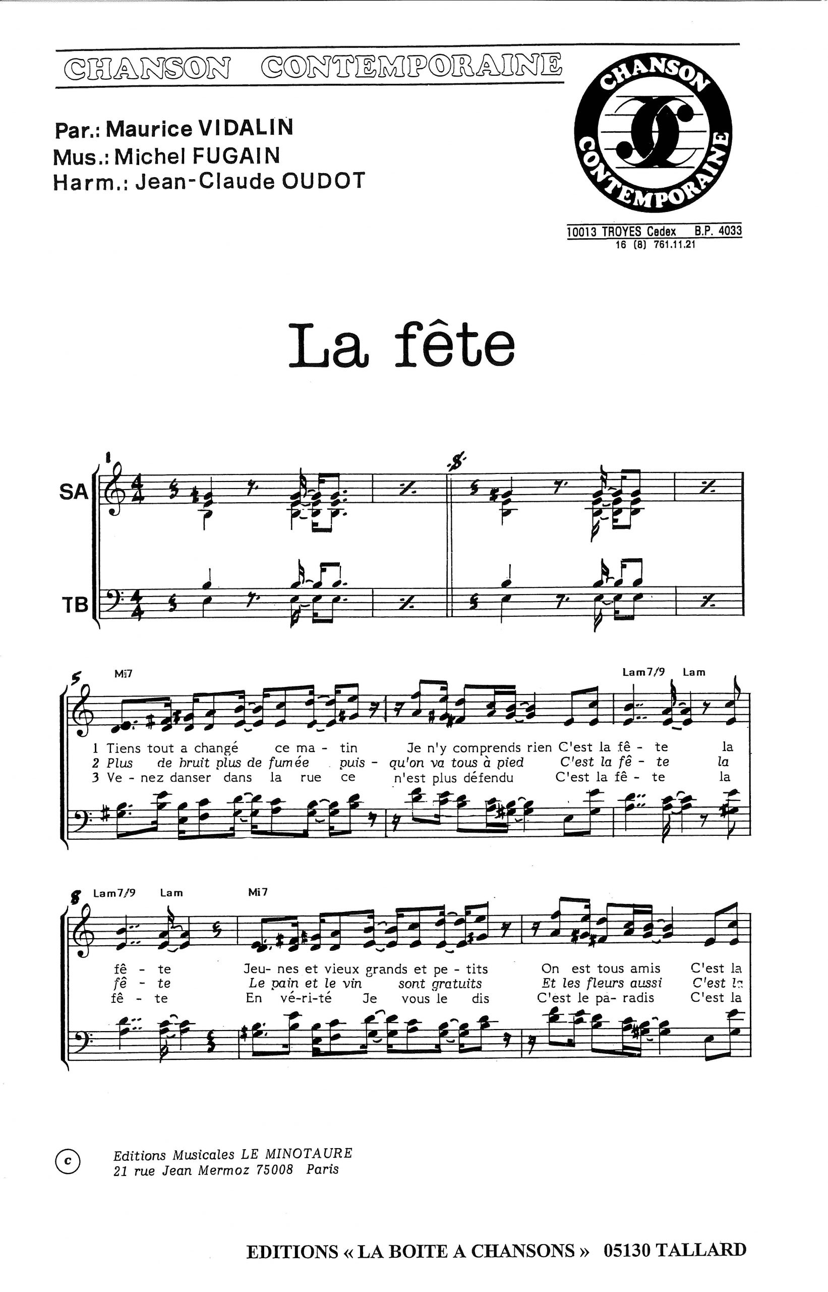 Paroles et musique de VIDALIN/FUGAIN Harmonisation : Jean Claude OUDOT