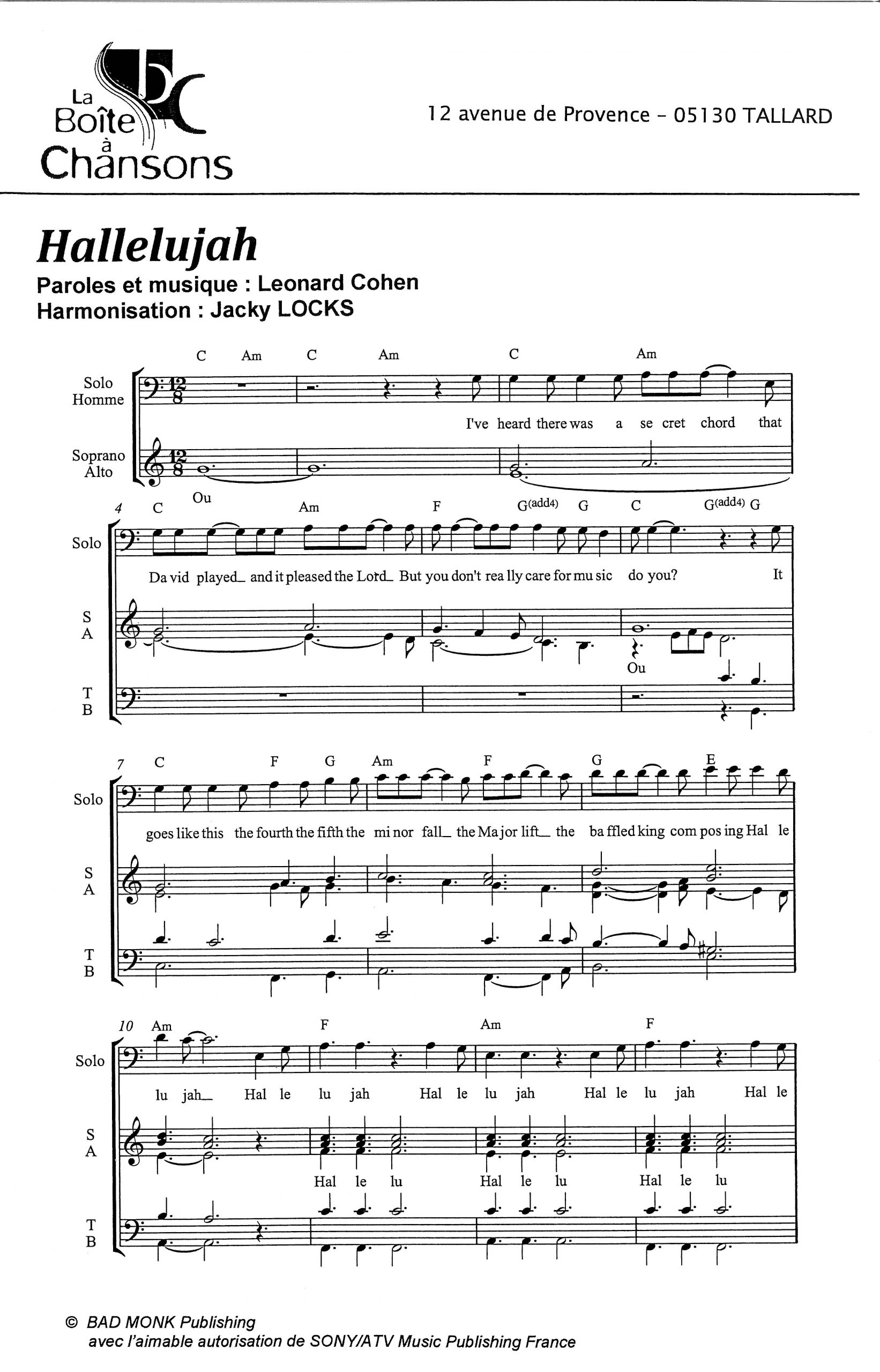 Paroles et musique de COHEN Harmonisation : Jacky LOCKS