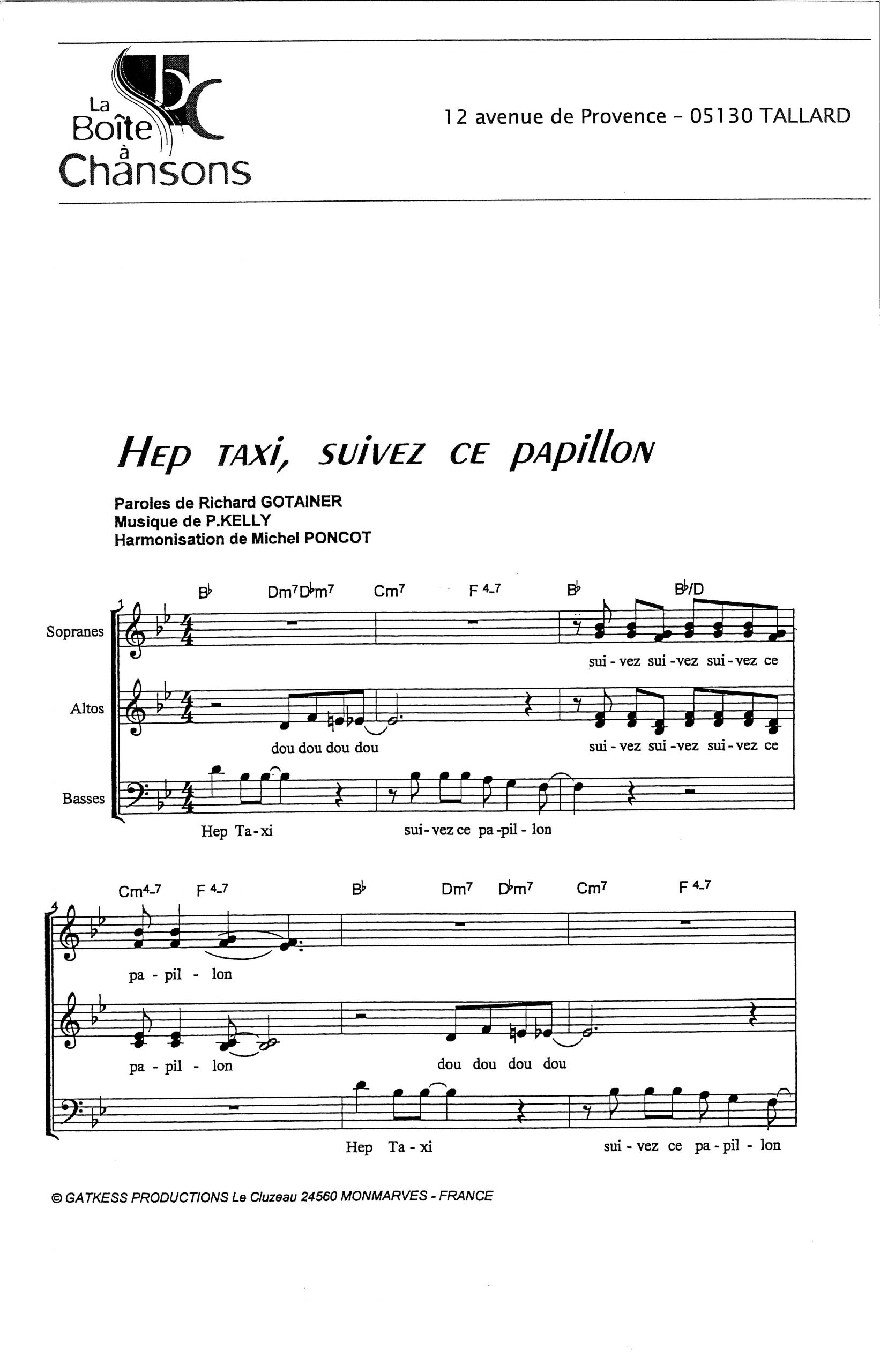 Paroles et musique de GOTAINER/KELLY Harmonisation : Michel PONCOT