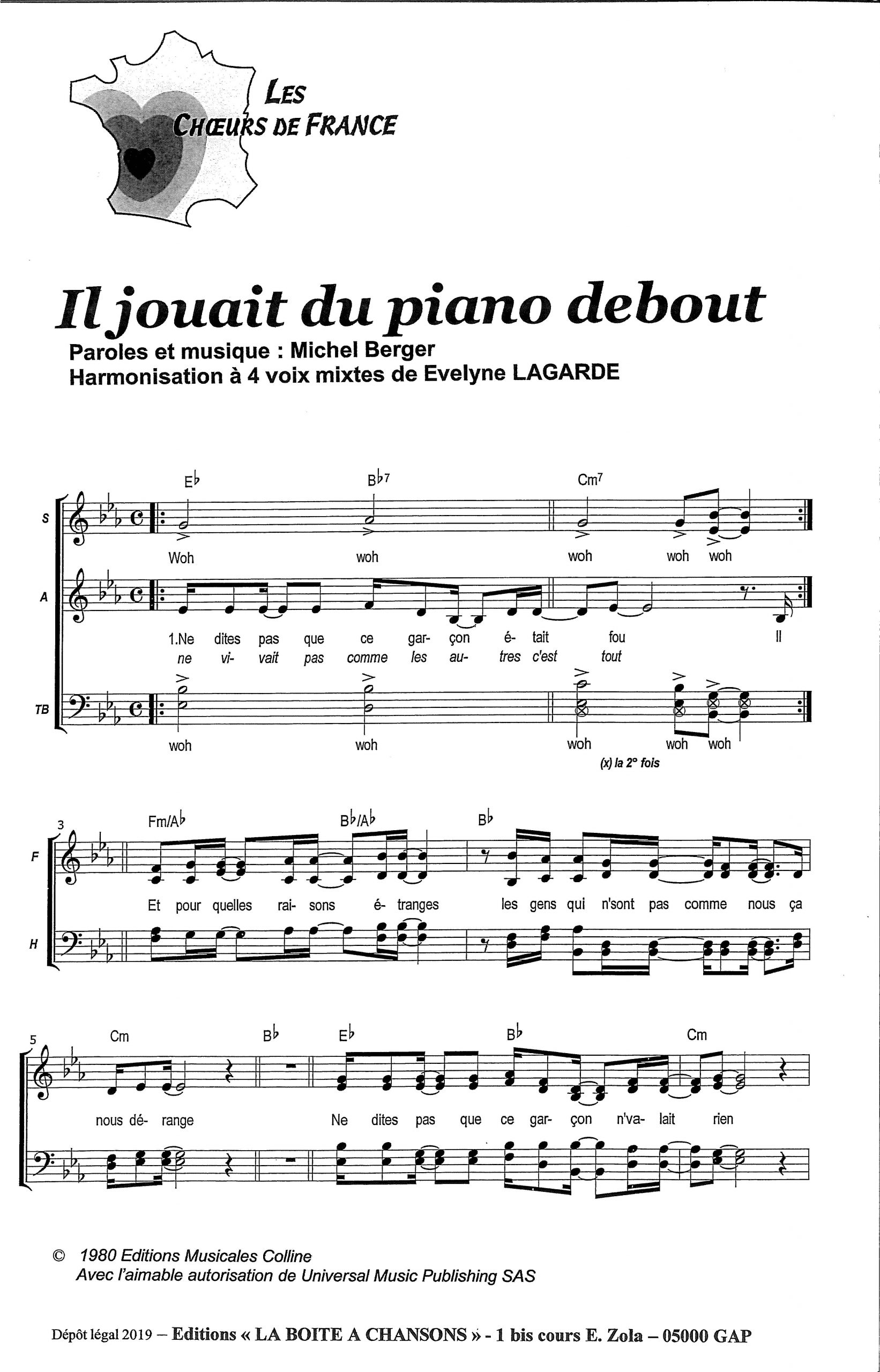 Paroles et musique : M. Berger Harmonisation : Evelyne Lagarde