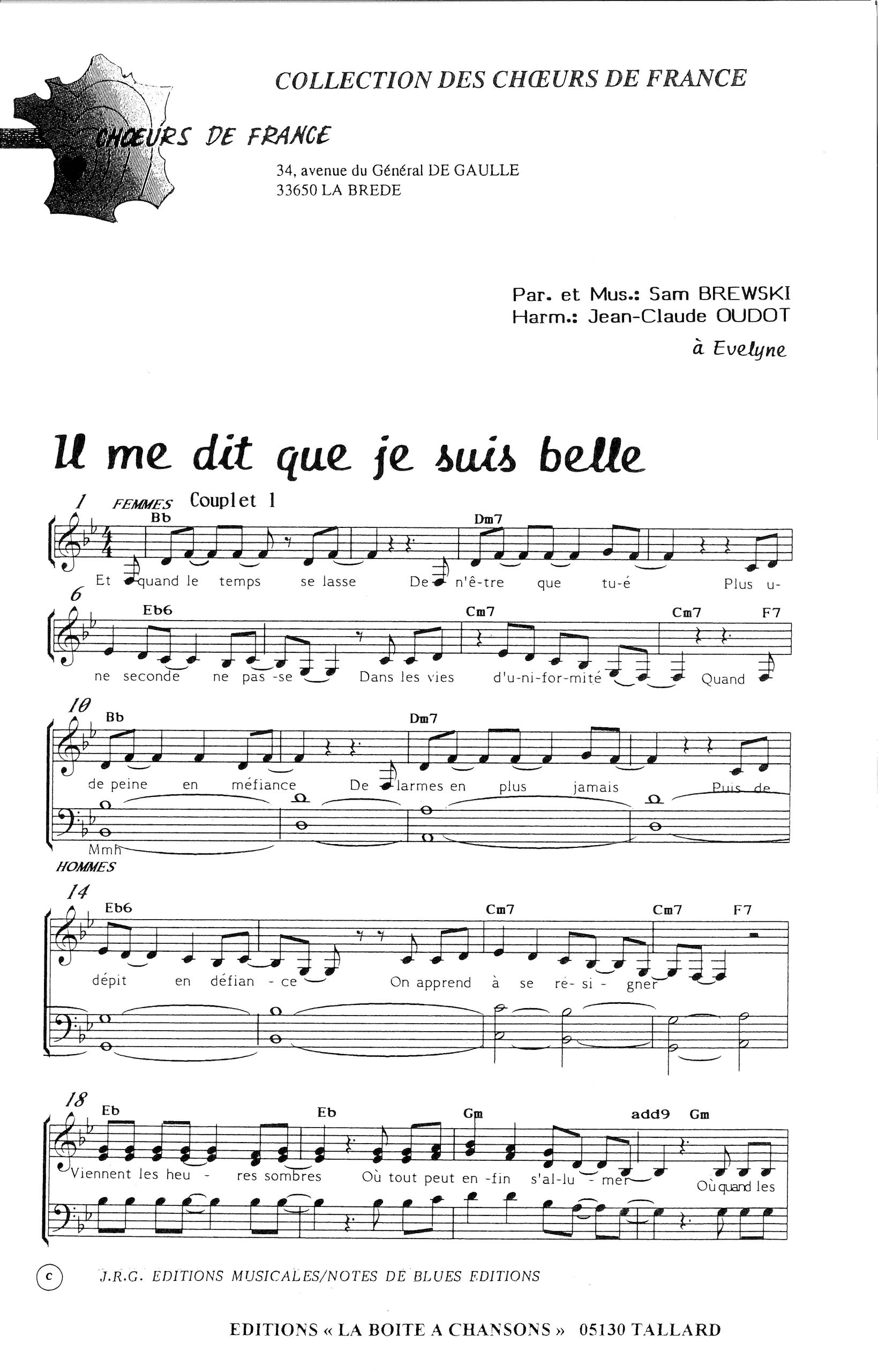 Paroles et musique de BREWSKI Harmonisation : Jean Claude OUDOT