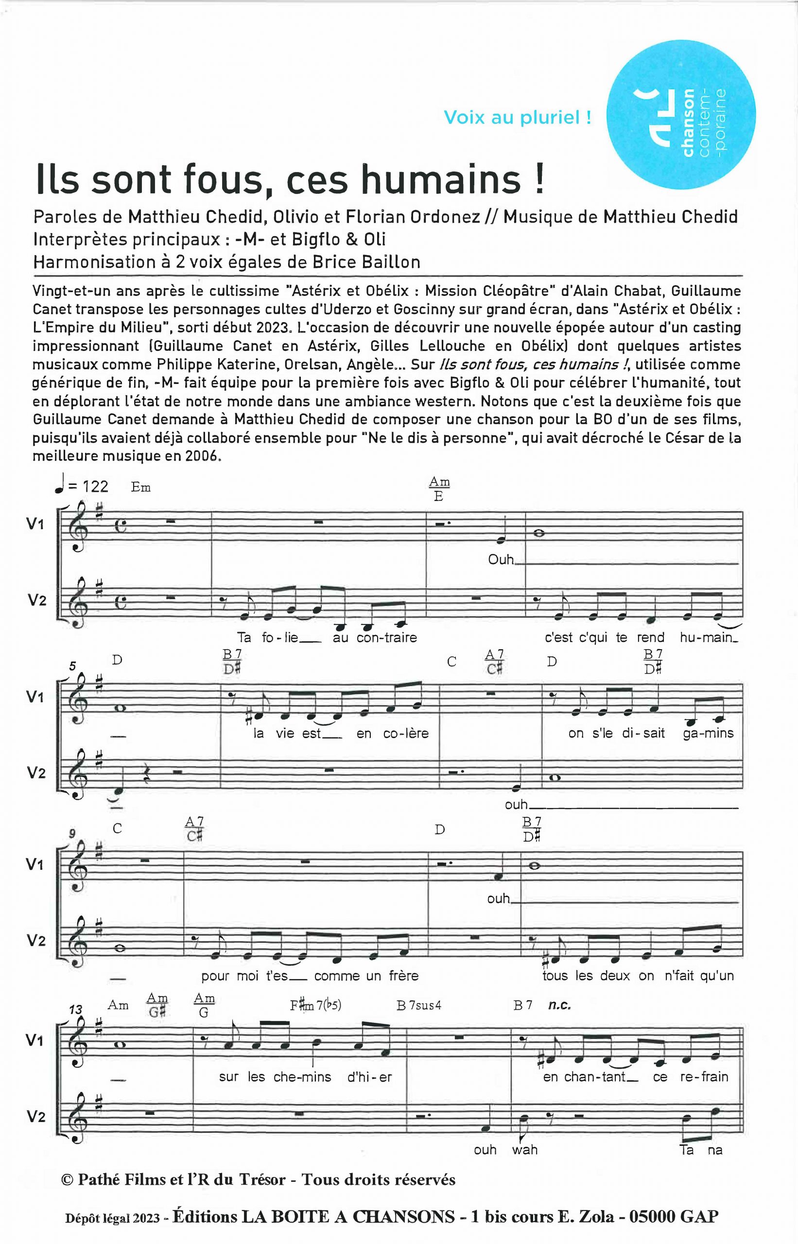 Paroles et musique : Chedid Harmonisation : Brice Baillon