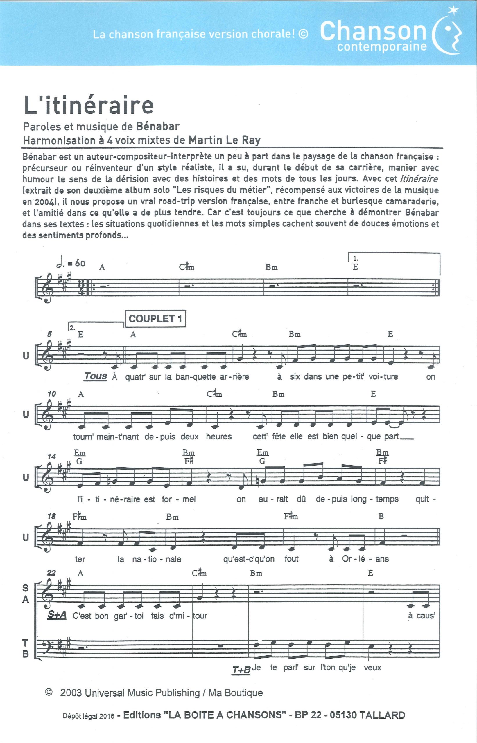 Paroles et musique : Benabar Harmonisation : Martin LE RAY