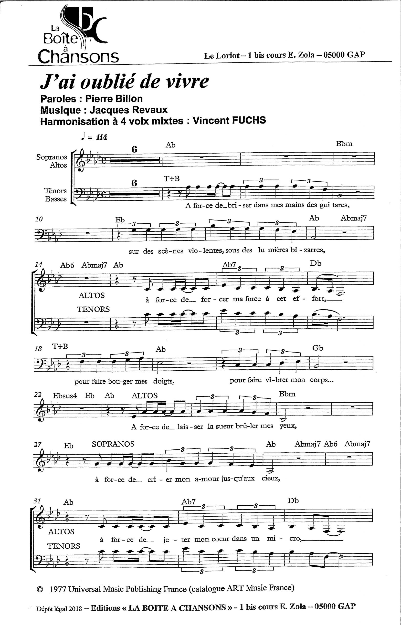 Paroles et musique : P. Billon / J. Revaux Harmonisation : Vincent Fuchs