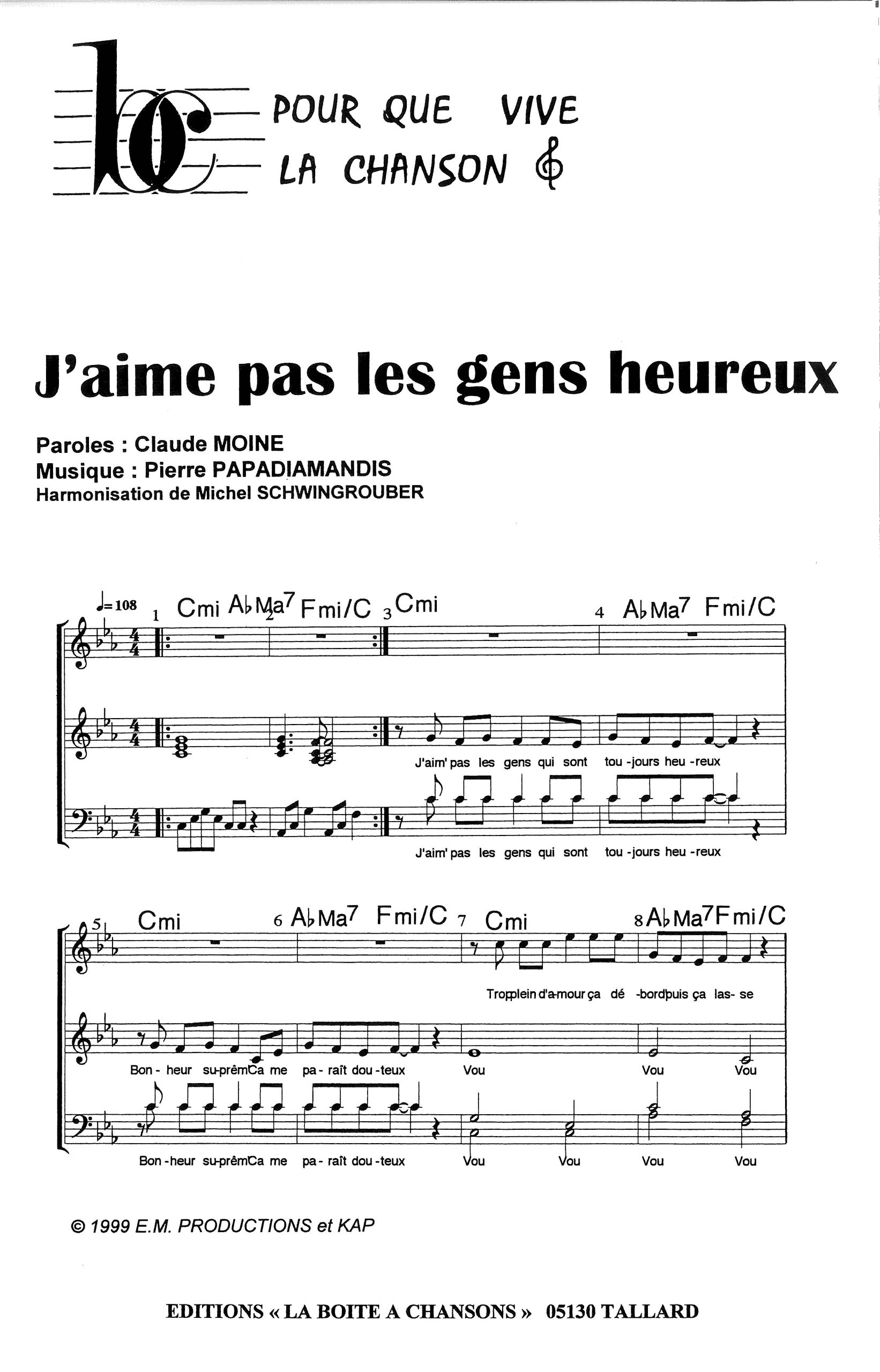 Paroles et musique de MOINE/PAPADIAMANDIS Harmonisation : Michel SCHWINGROUBER
