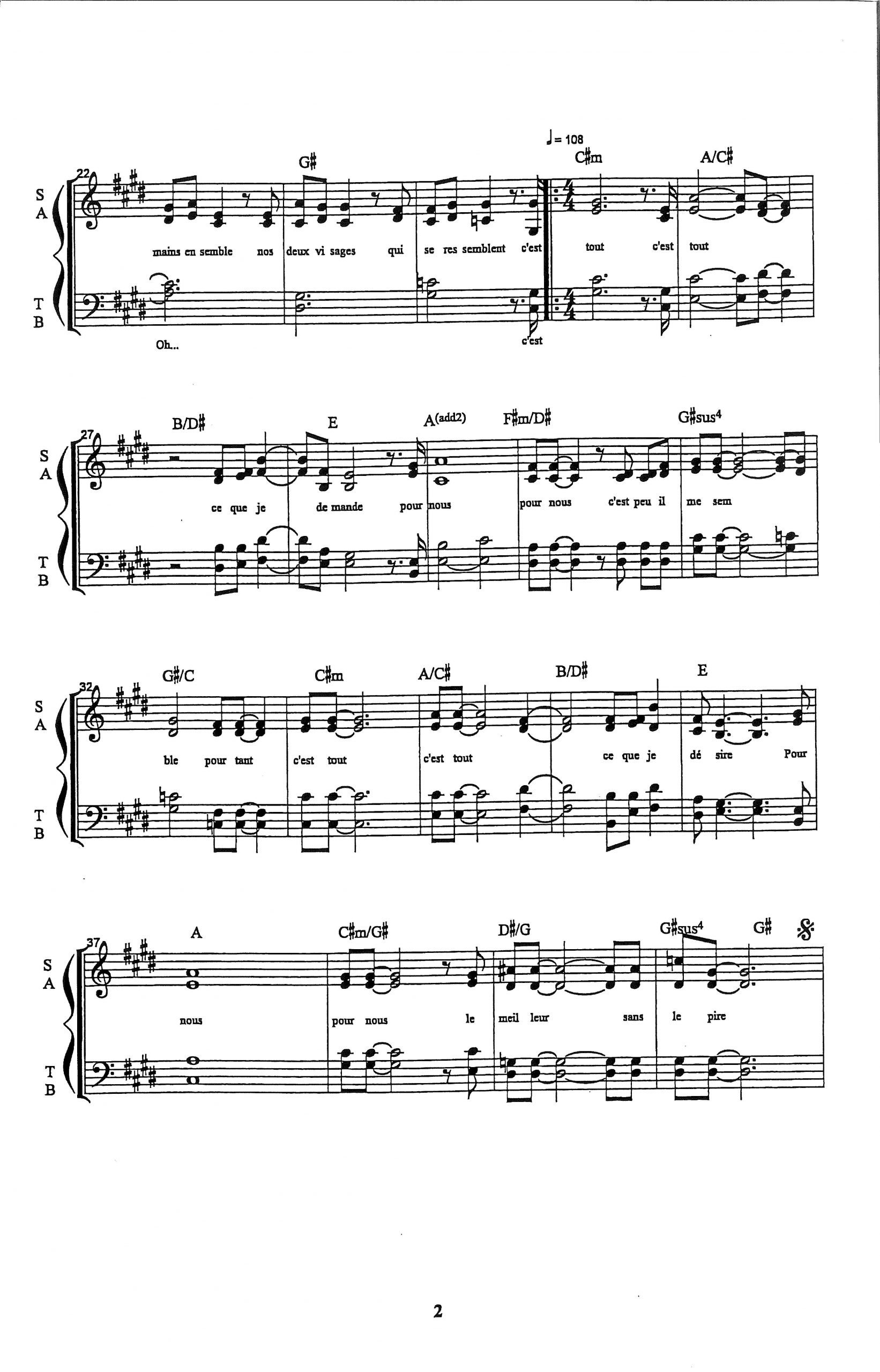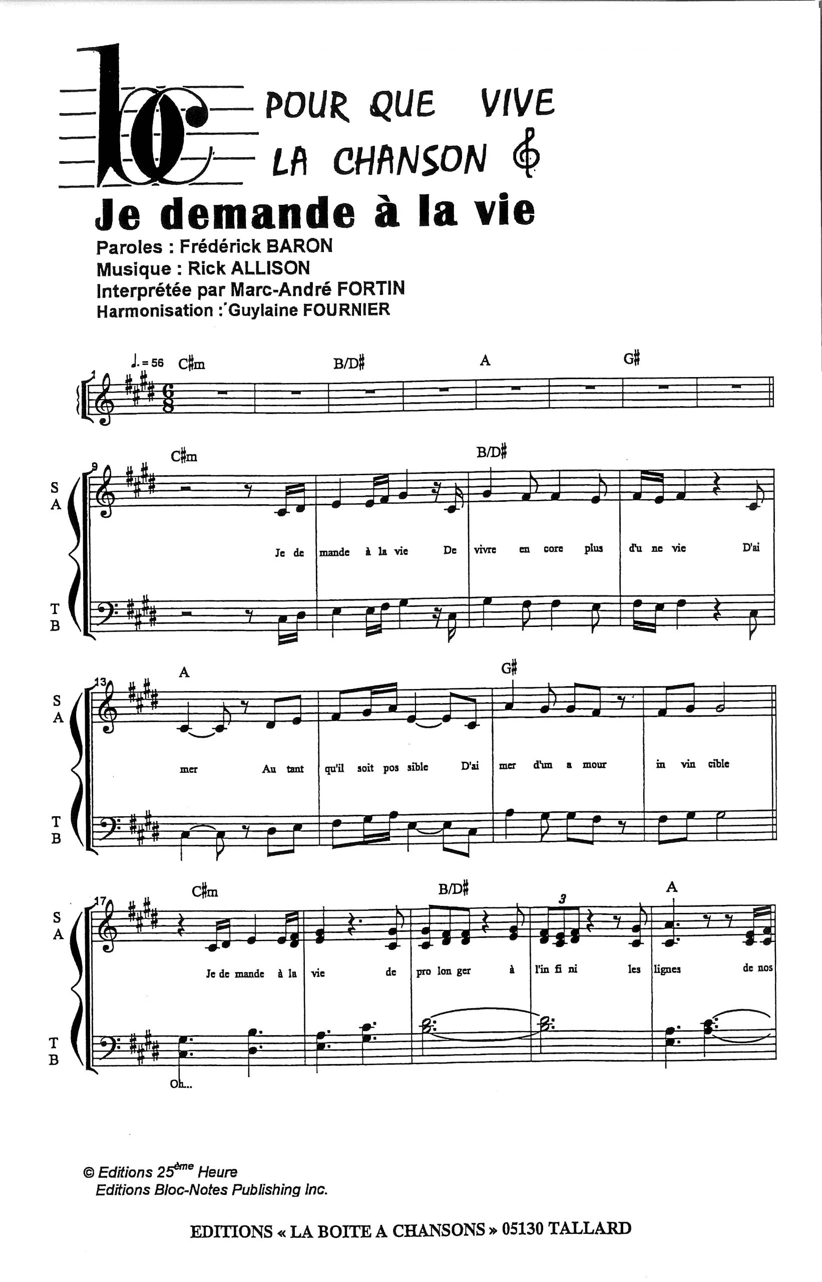 Paroles et musique de BARON / ALLISON Harmonisation : Guylaine FOURNIER