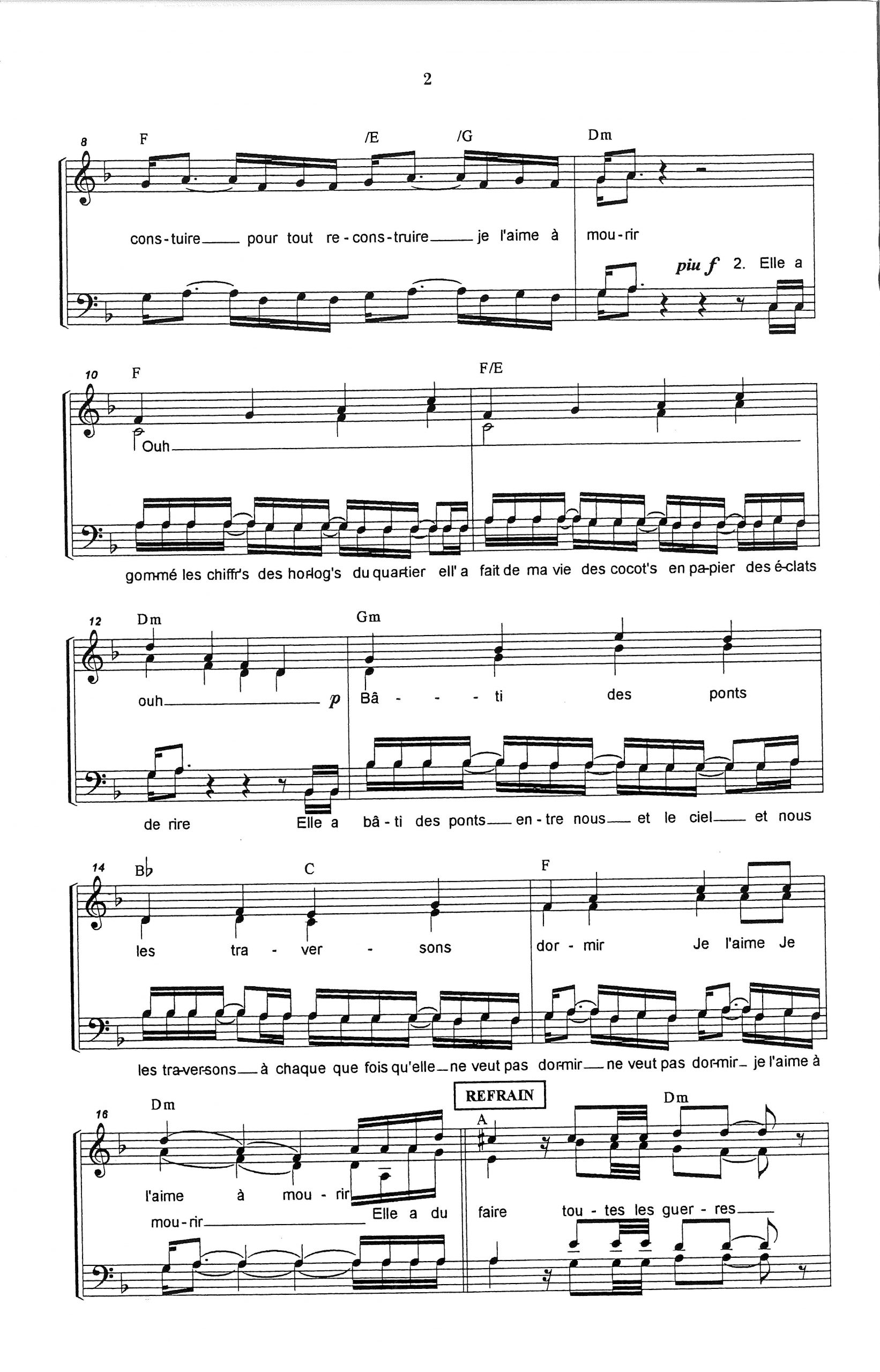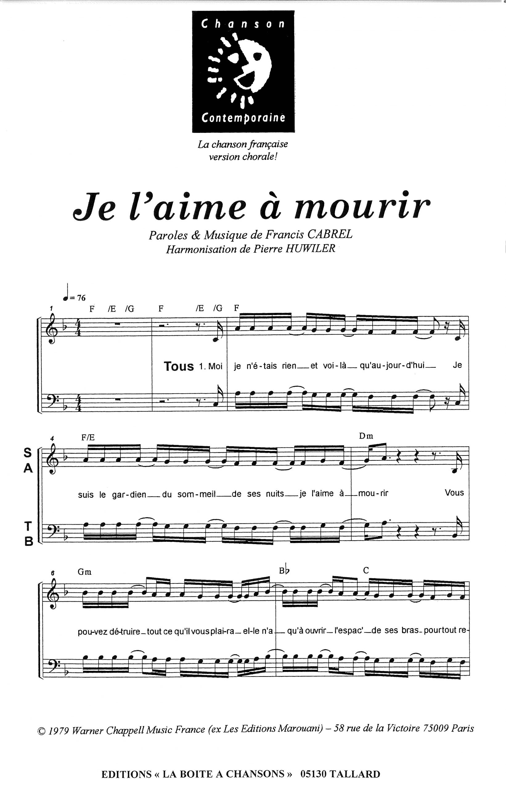 Paroles et musique de CABREL Harmonisation : Pierre HUWILER