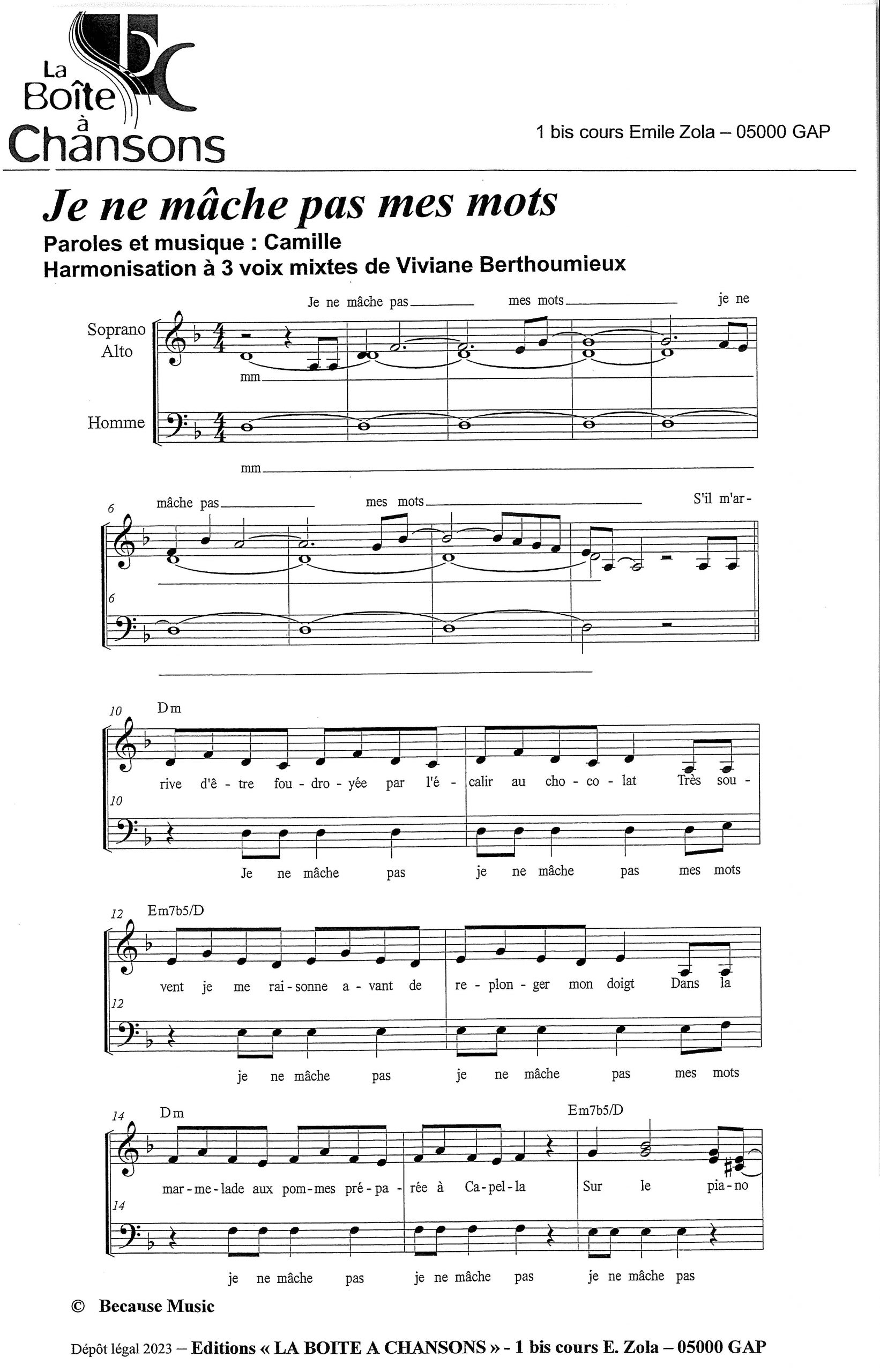 Paroles et musique : Camille Harmonisation : Viviane Berthoumieux