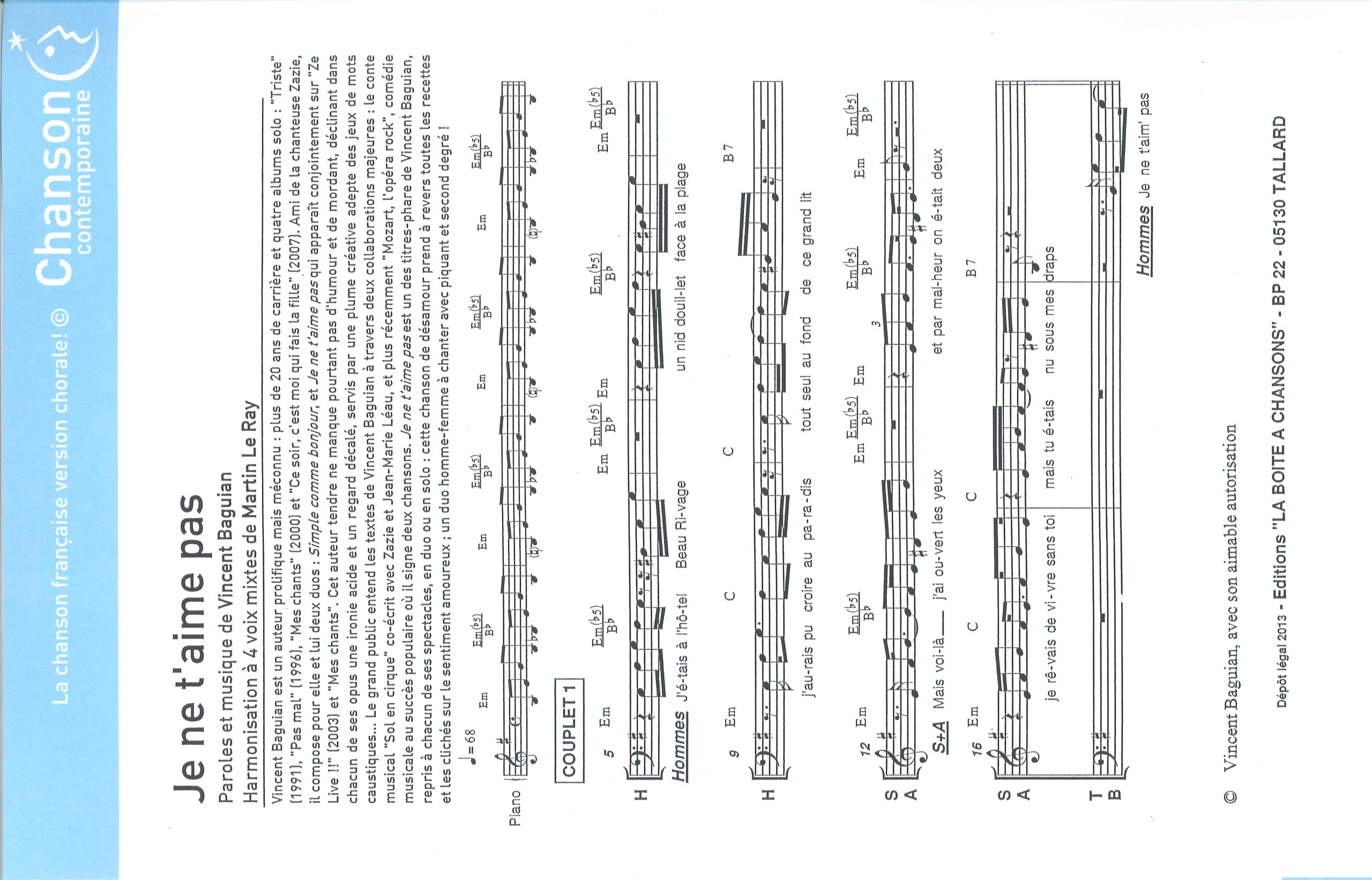 Paroles et musique de BAGUIAN Harmonisation : Martin LE RAY