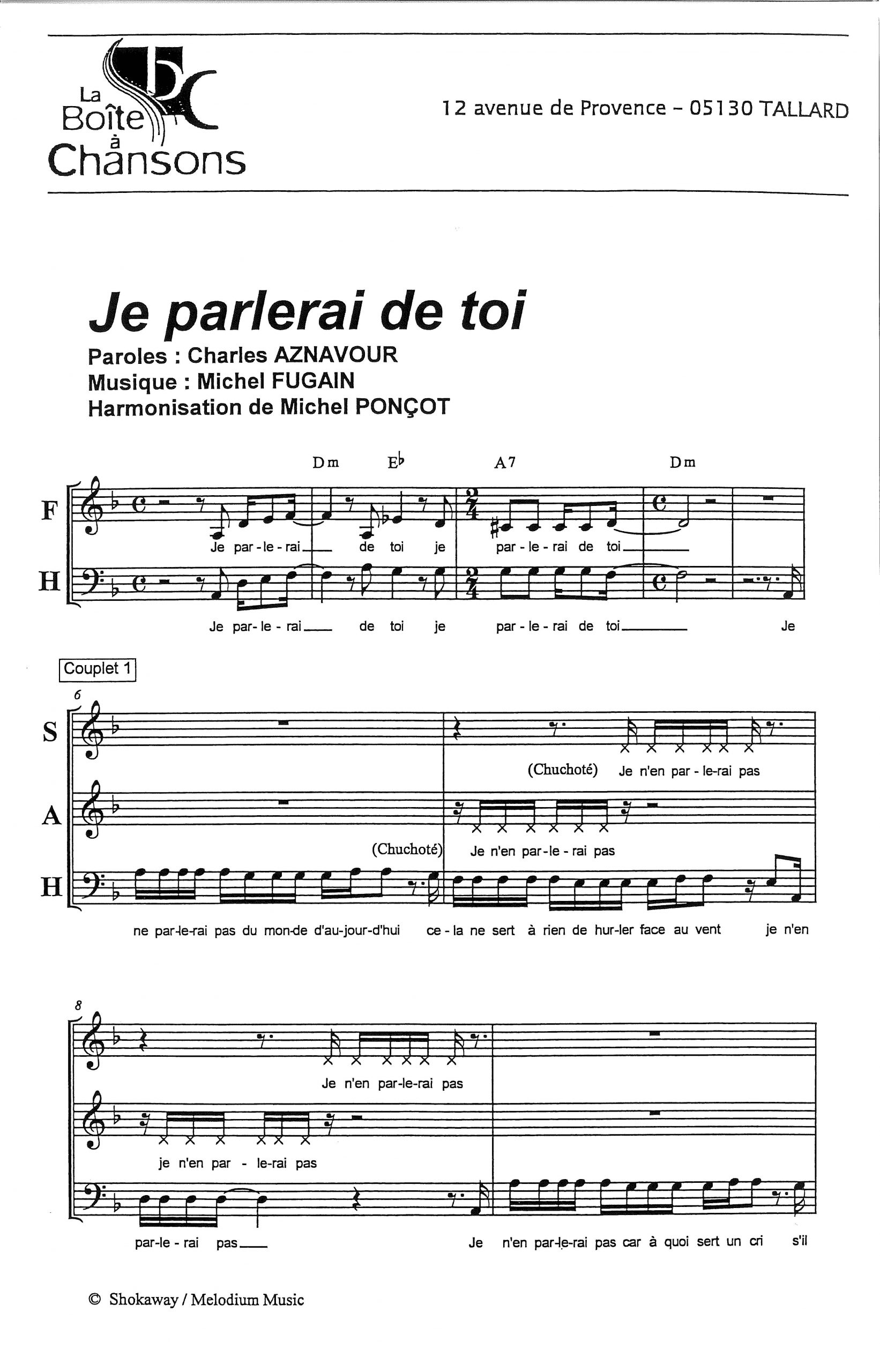 Paroles et musique de AZNAVOUR / FUGAIN Harmonisation : Michel PONCOT