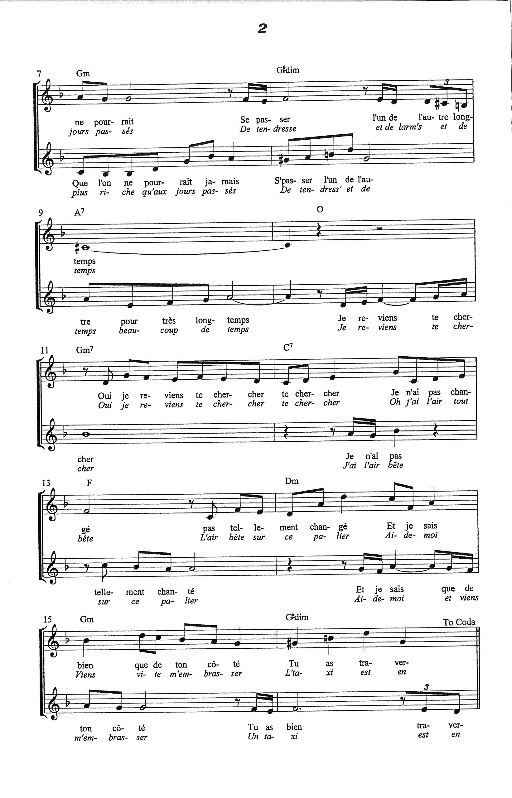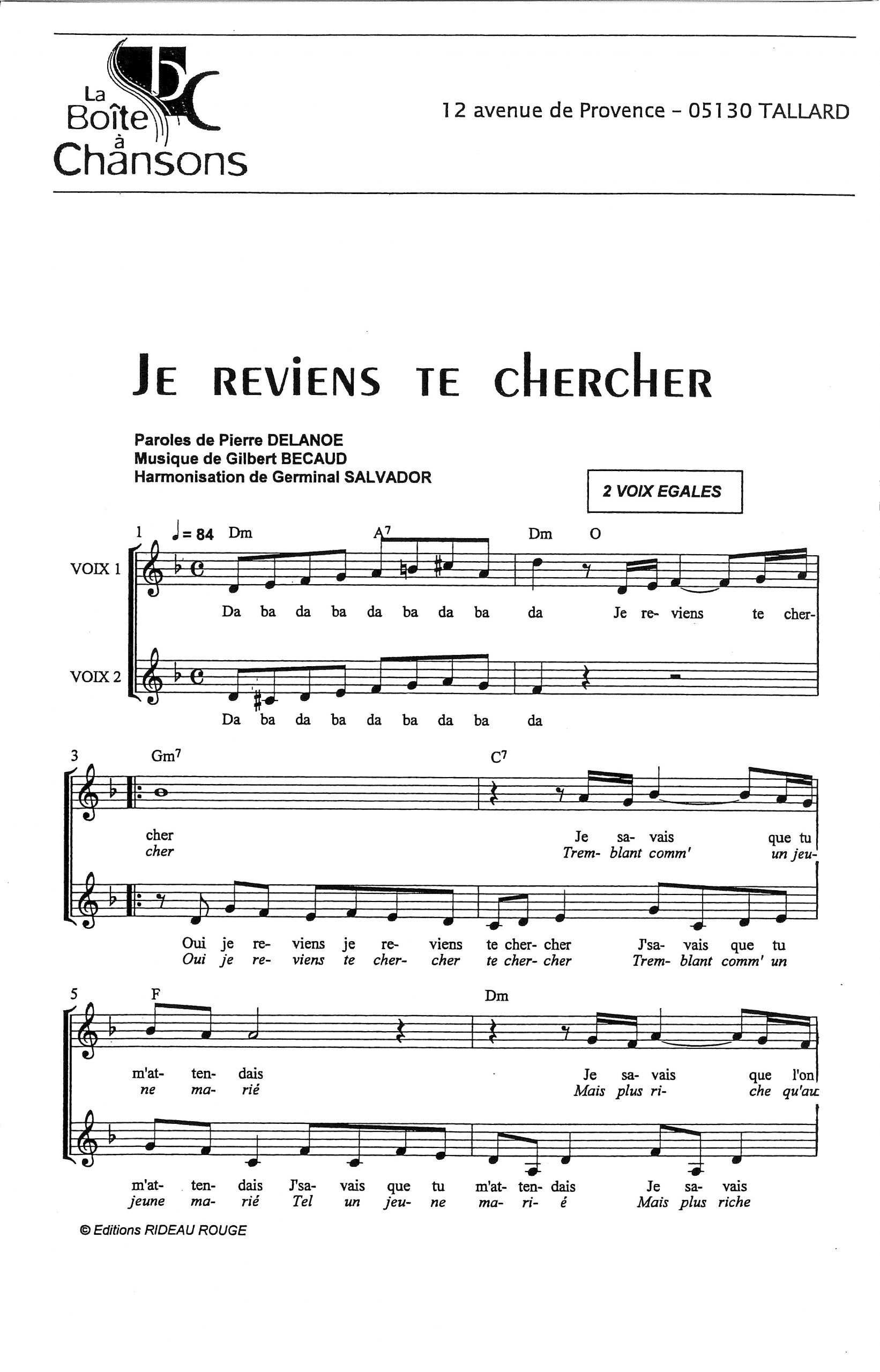 Paroles et musique de DELANOE/BECAUD Harmonisation : Germinal SALVADOR