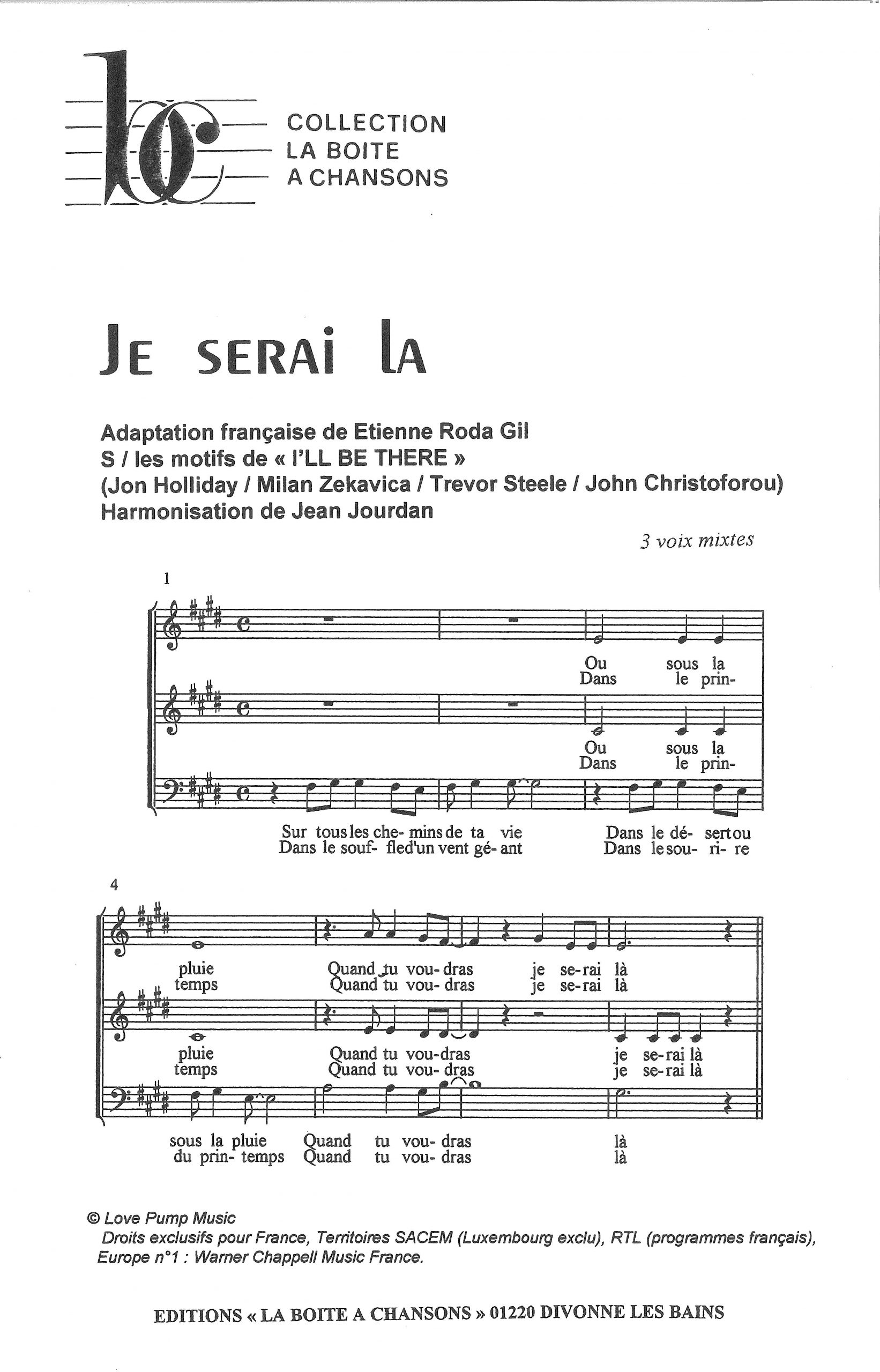 Paroles et musique de RODA GIL / STEELE Harmonisation : Jean JOURDAN