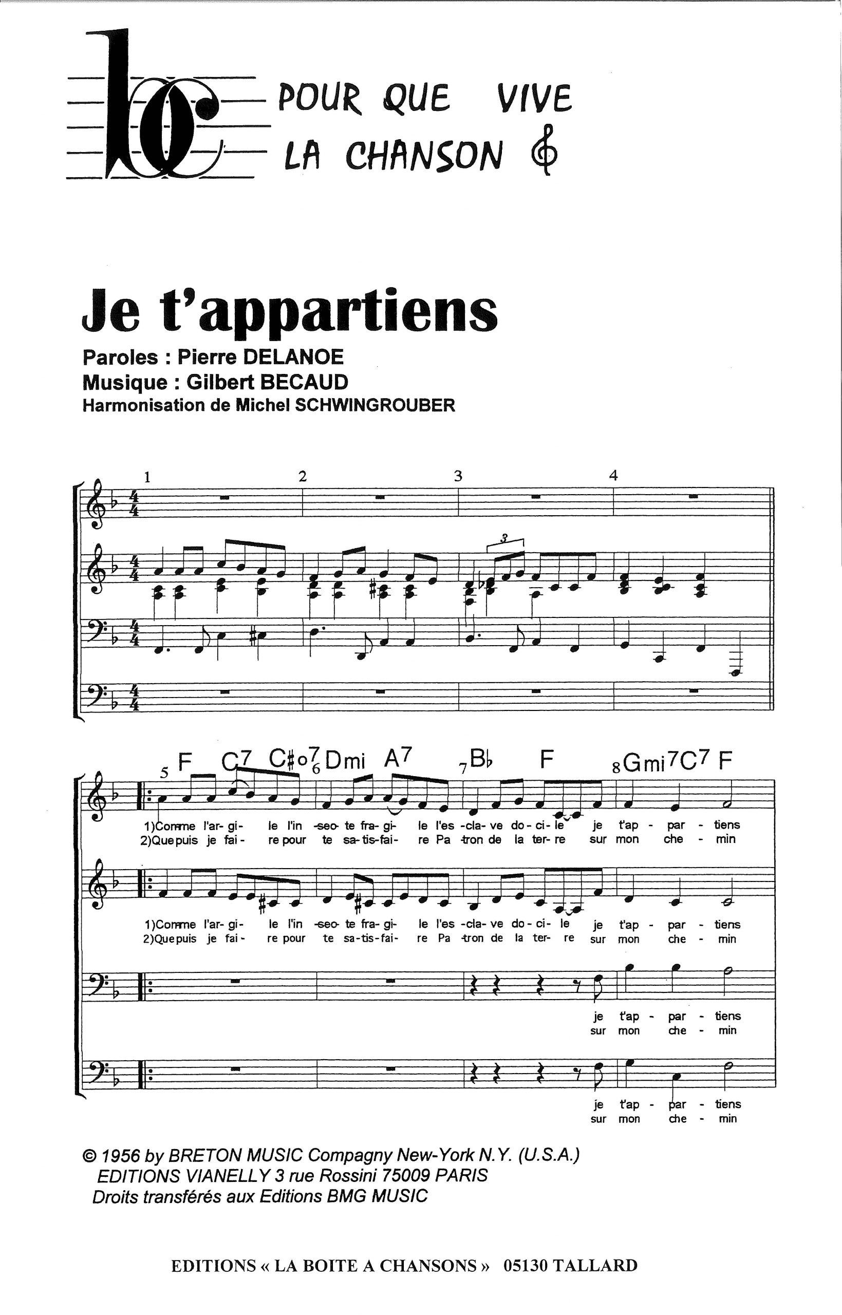 Paroles et musique de DELANOE/BECAUD Harmonisation : Michel SCHWINGROUBER