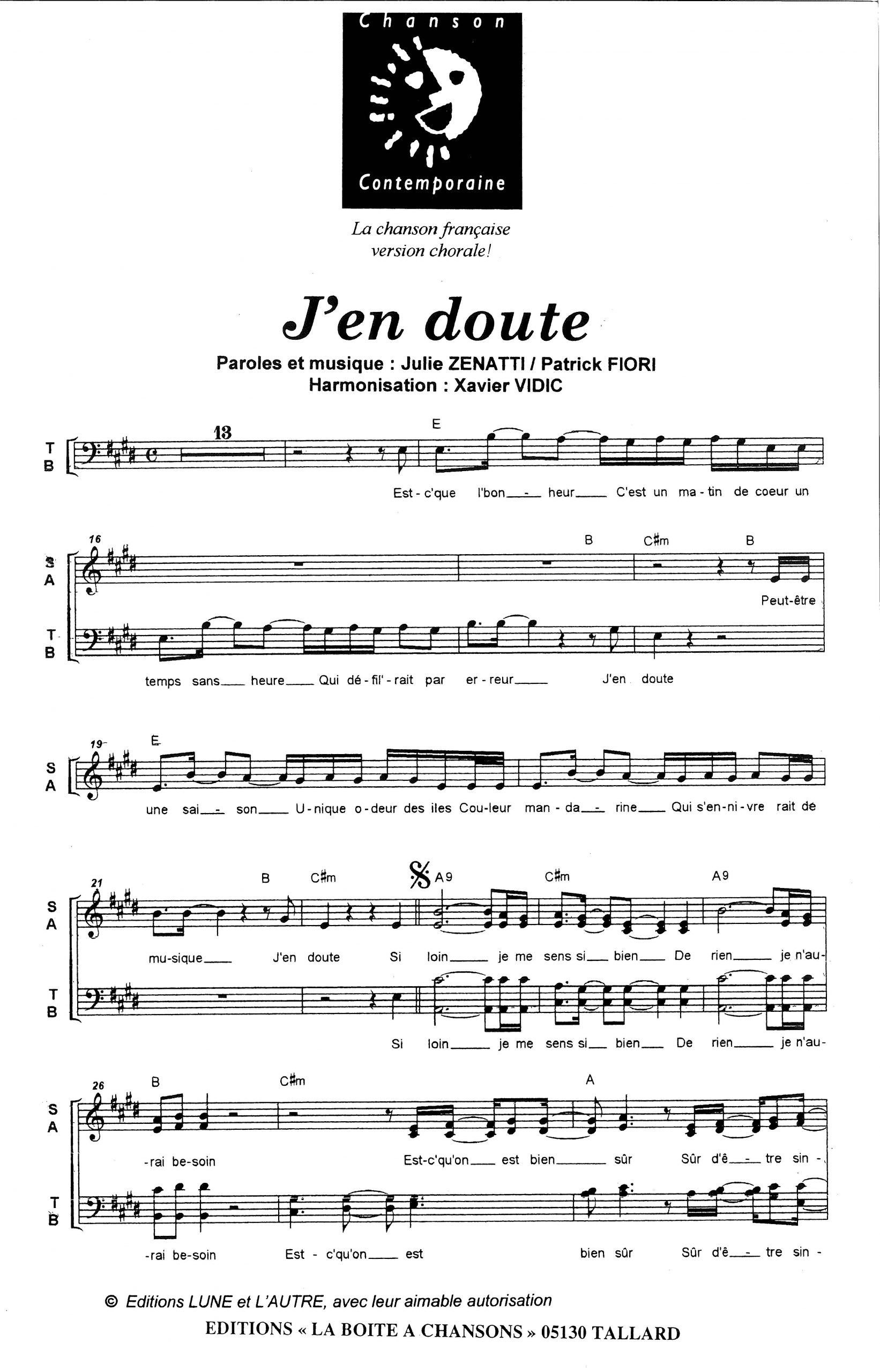 Paroles et musique de ZENATTI / FIORI Harmonisation : Xavier VIDIC