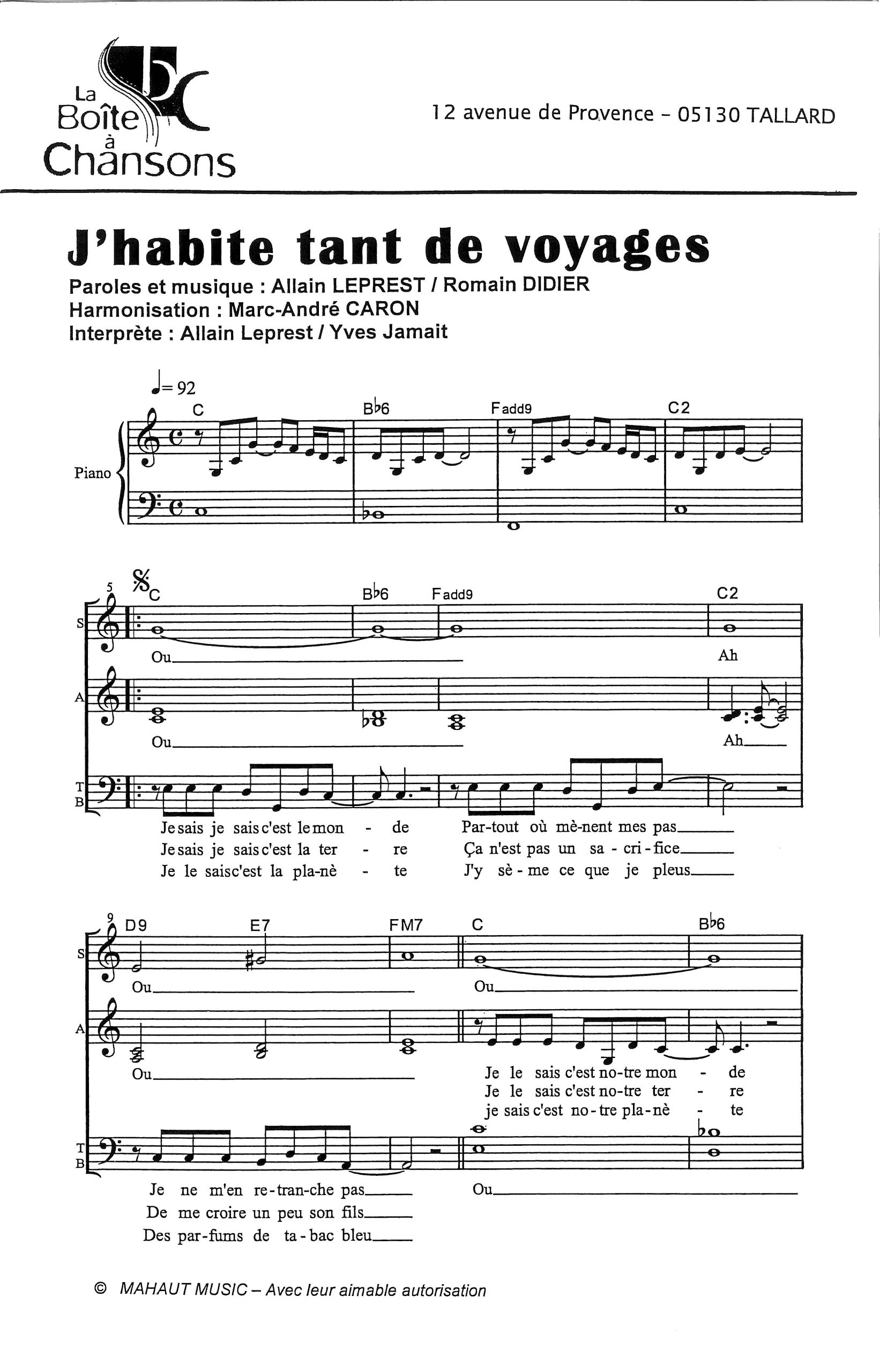 Paroles et musique de LEPREST/DIDIER Harmonisation : Marc André CARON