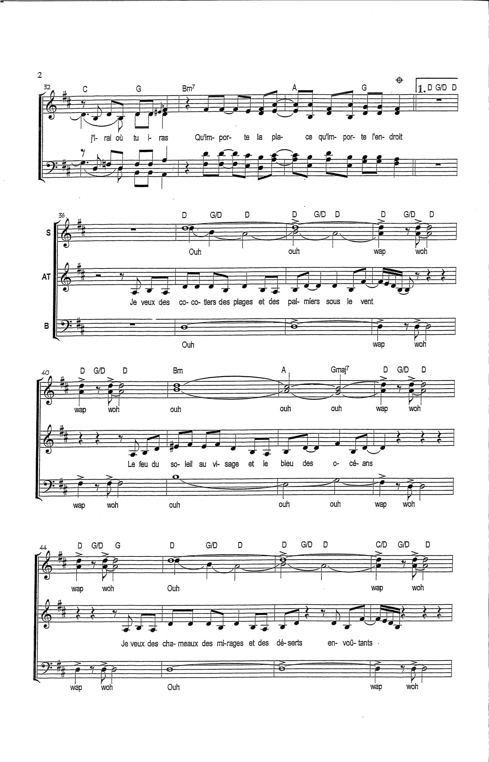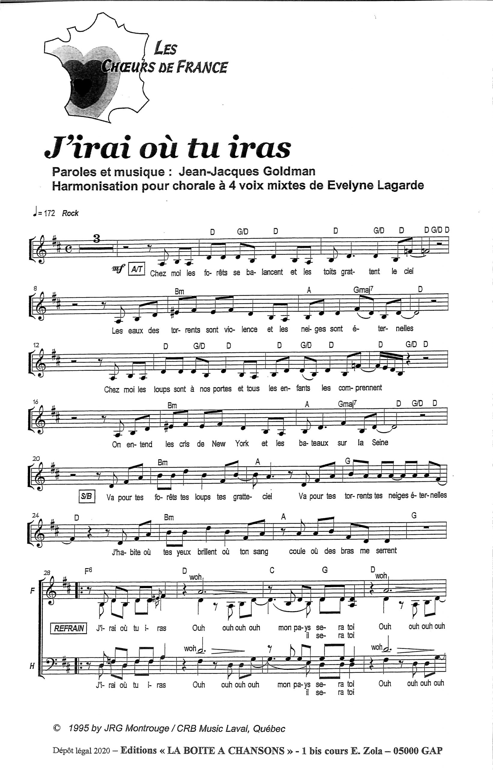 Paroles et musique : J.J. Goldman Harmonisation : Evelyne Lagarde