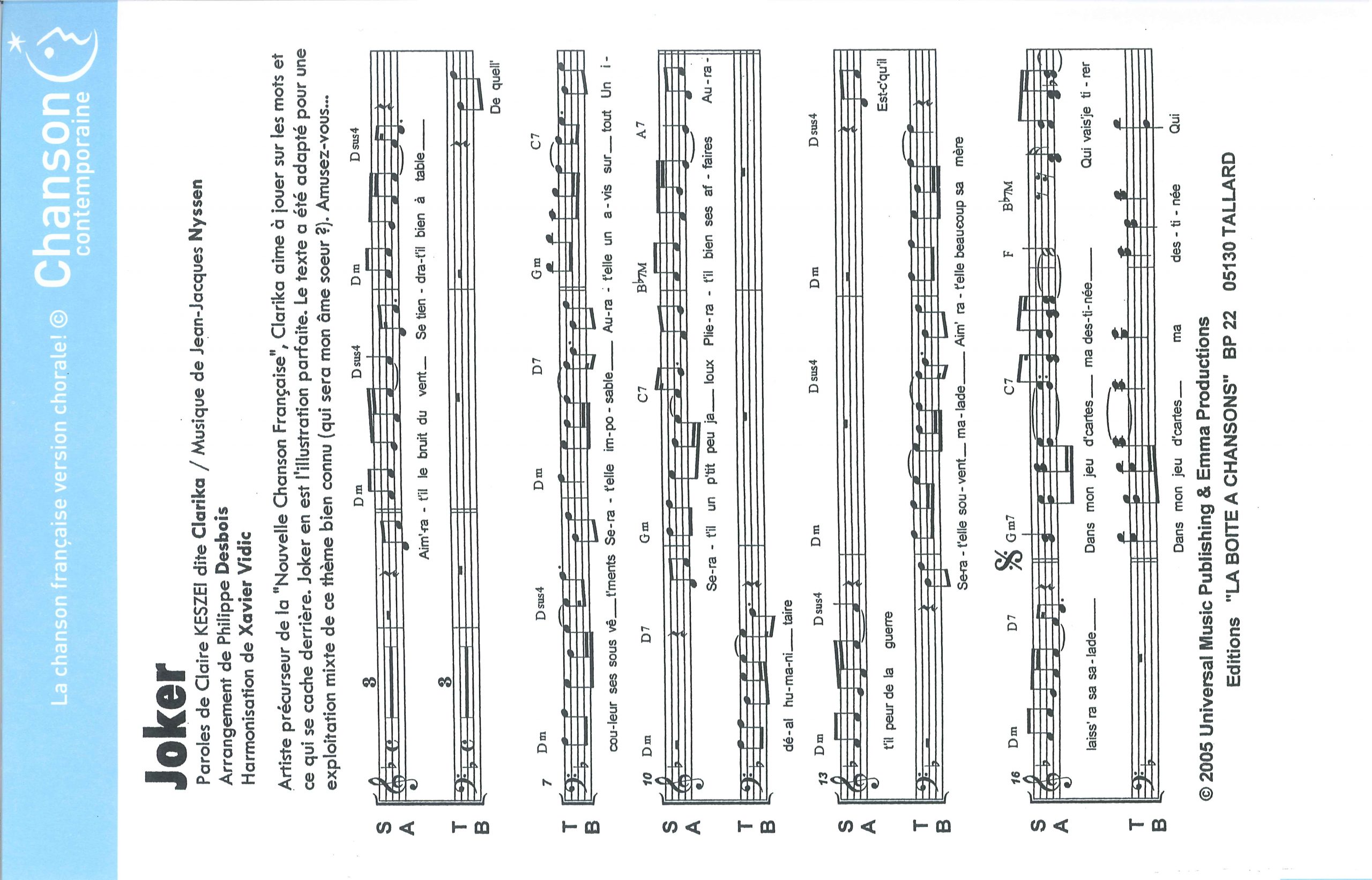 Paroles et musique de CLARIKA Harmonisation : Xavier VIDIC