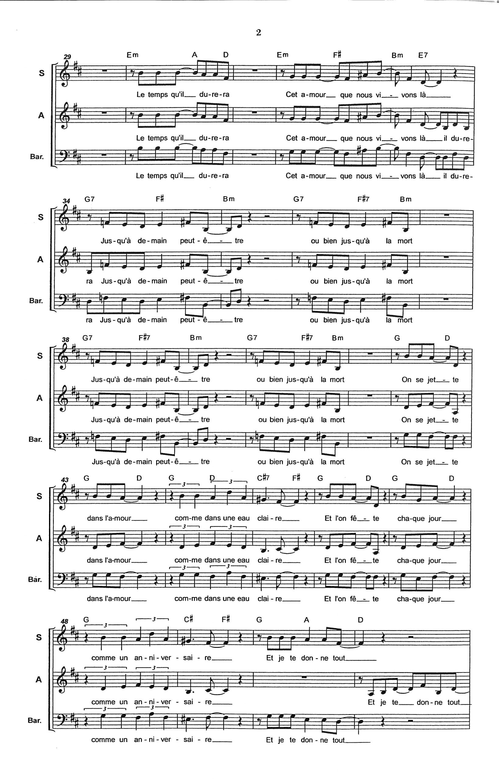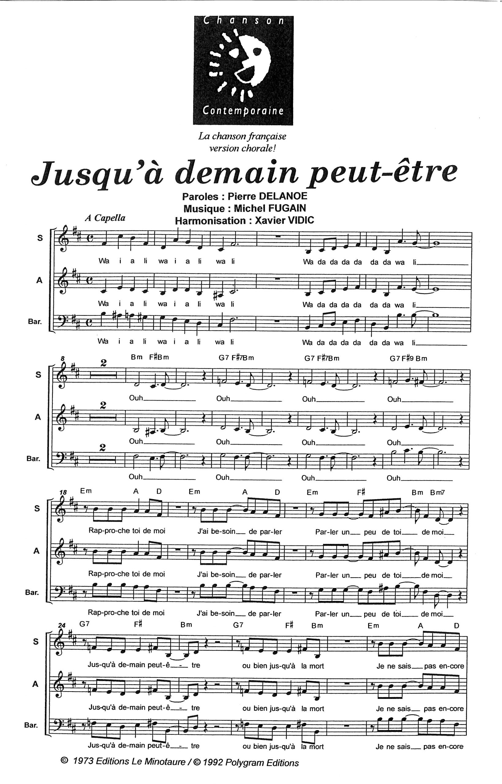 Paroles et musique de DELANOE/FUGAIN Harmonisation : Xavier VIDIC