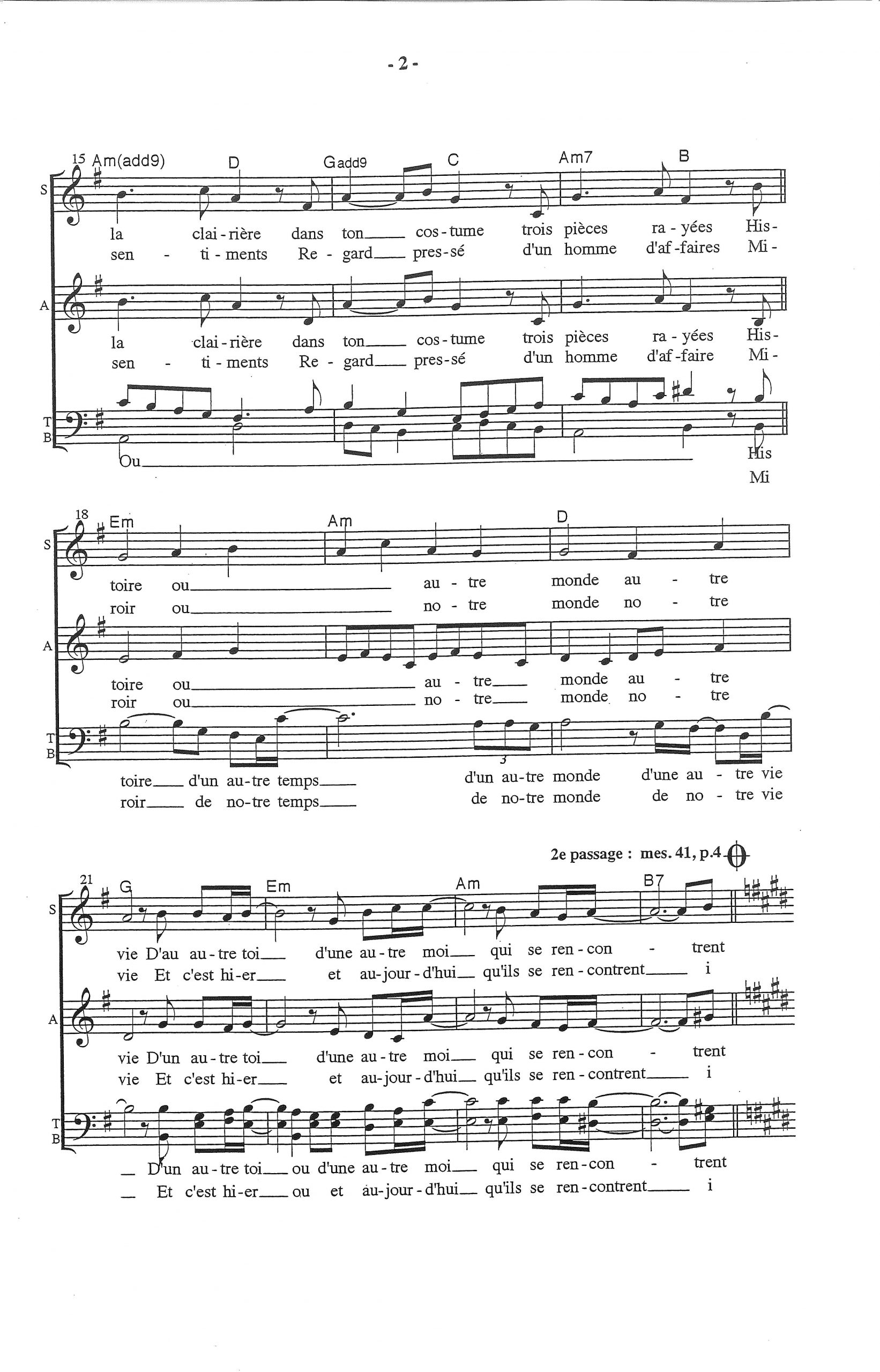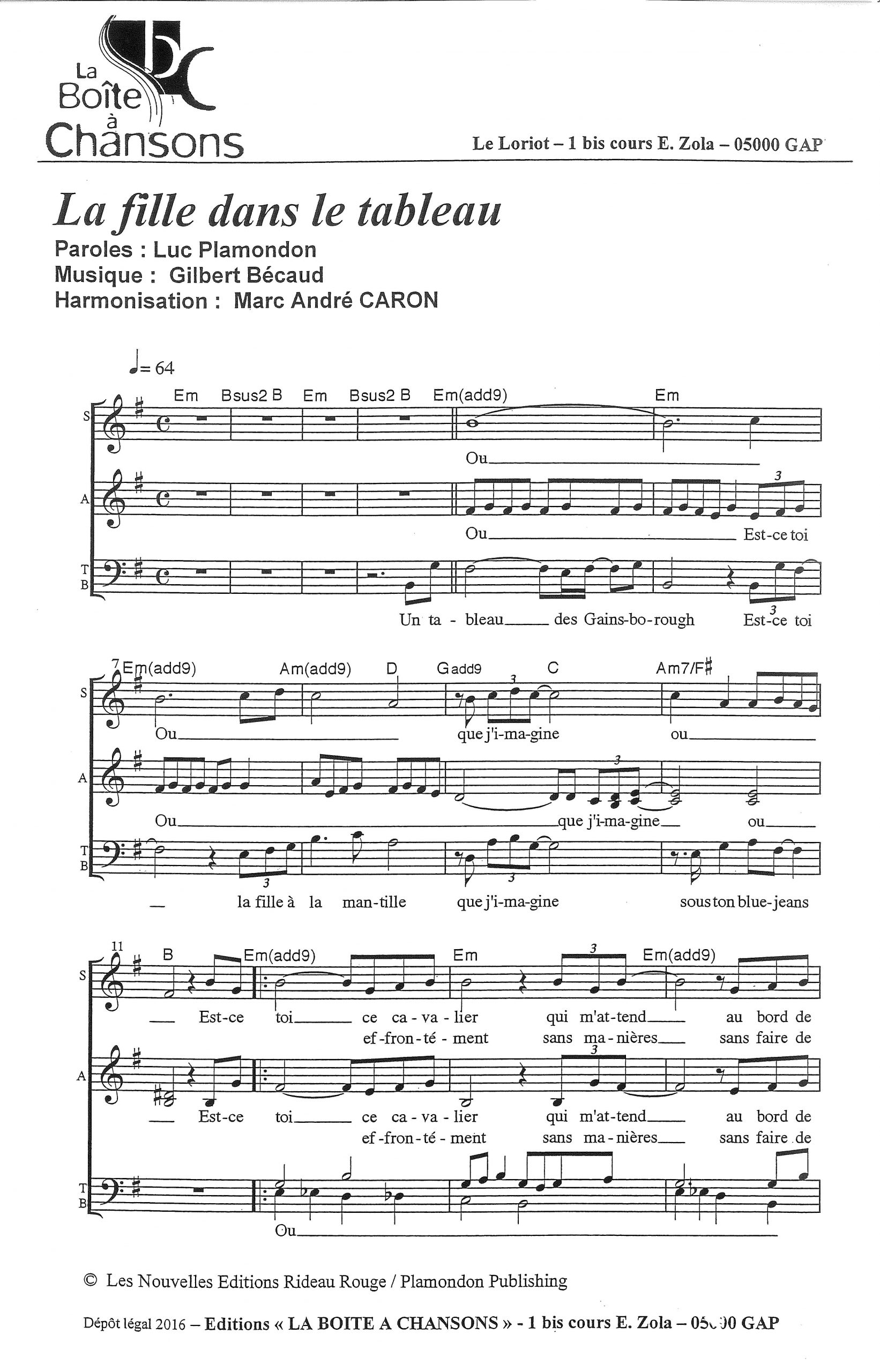 Paroles et musique : L. Plamondon / G. Bécaud Harmonisation : Marc André CARON