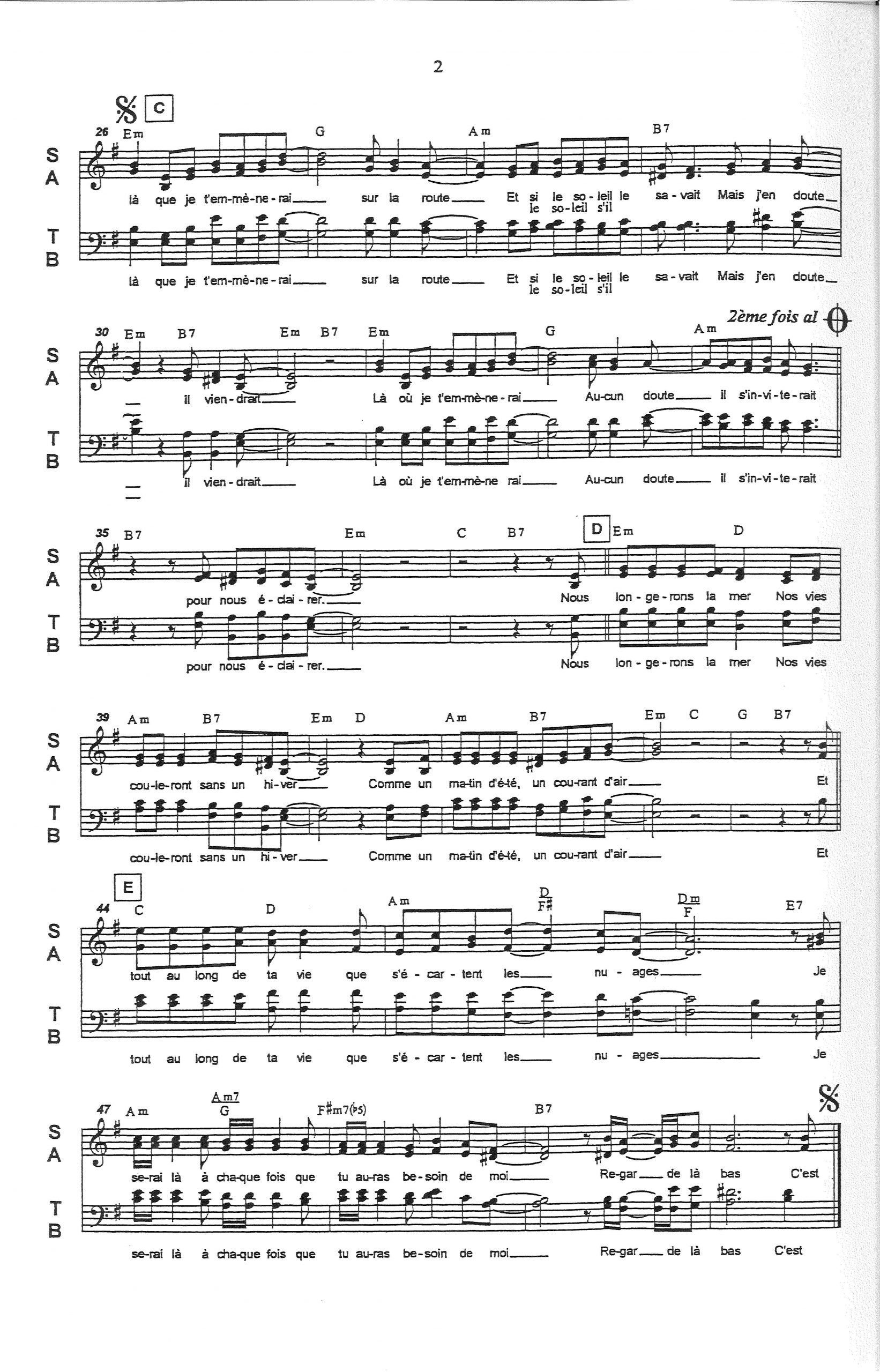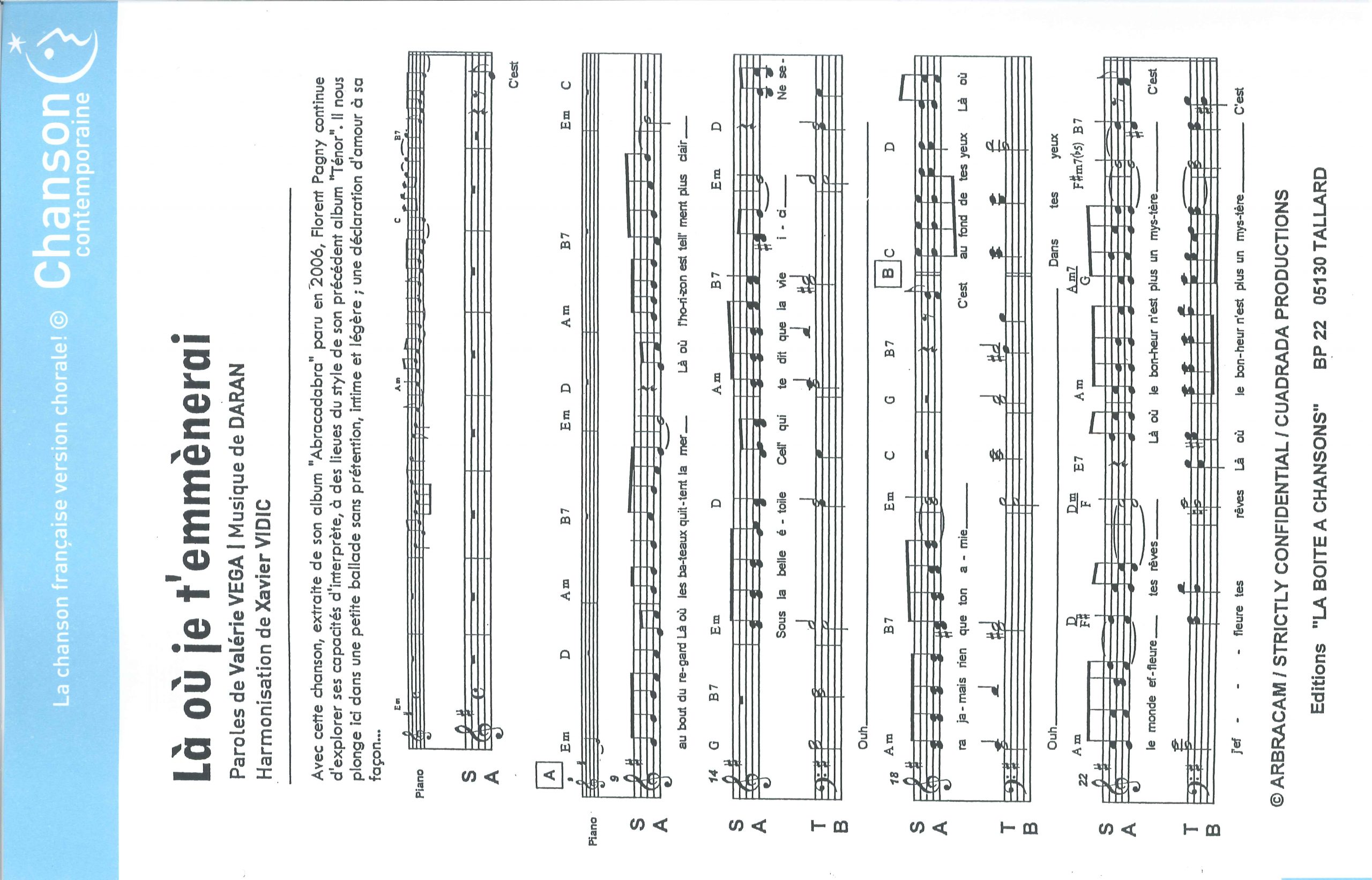 Paroles et musique de VEGA / DARAN Harmonisation : Xavier VIDIC