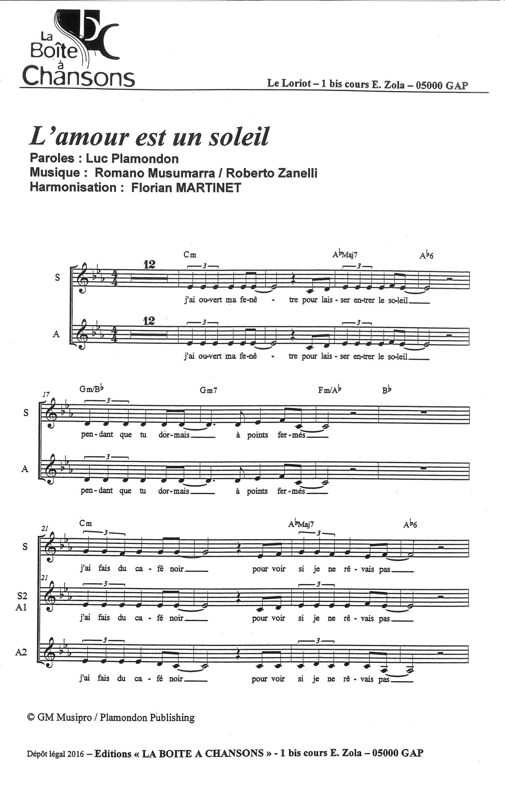 Paroles et musique : L. Plamondon / R. Musumarra / R. Zanelli Harmonisation : Florian MARTINET