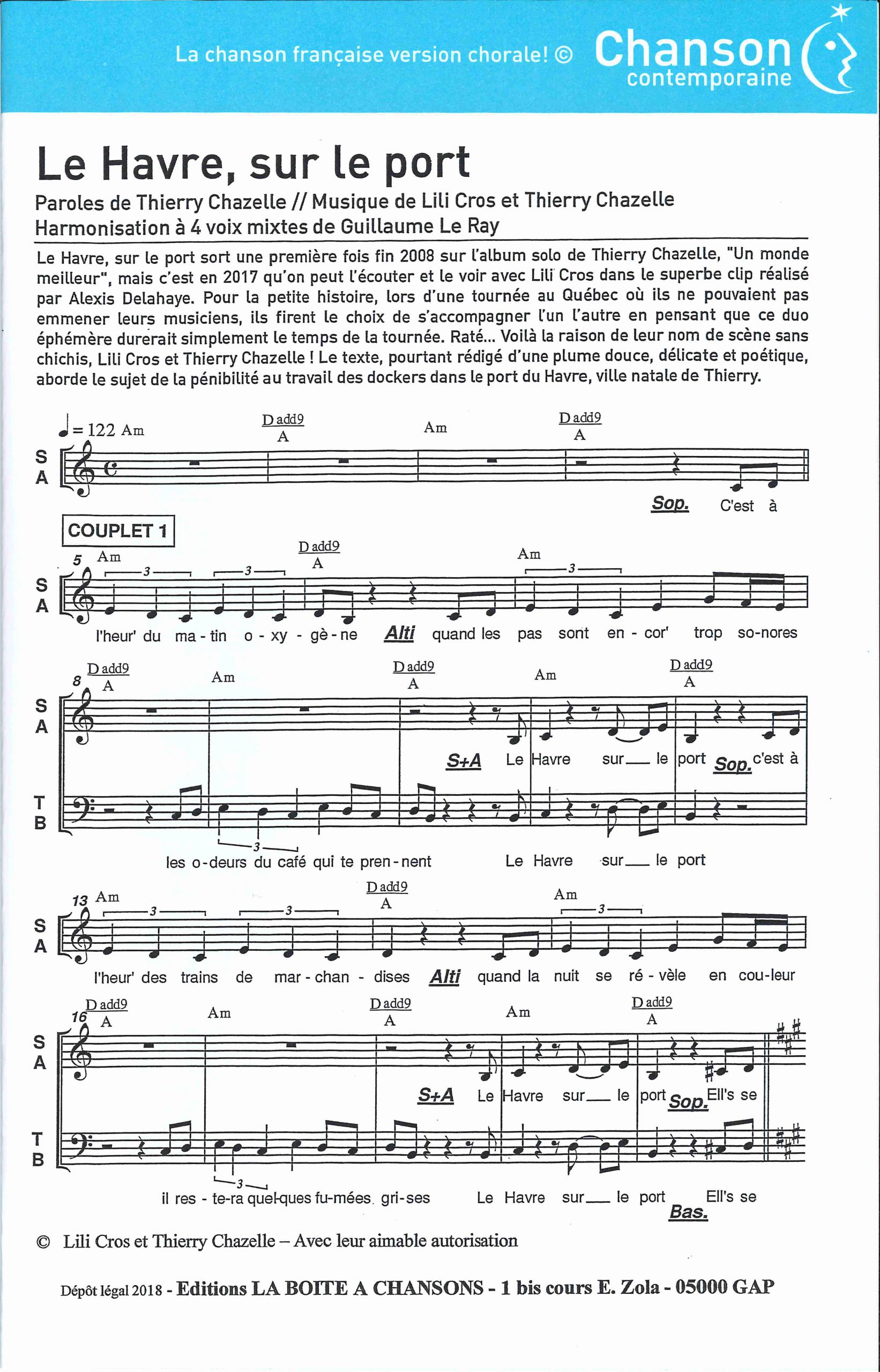 Paroles et musique : T. Chazelle / L. Cros Harmonisation : Guillaume Le Ray